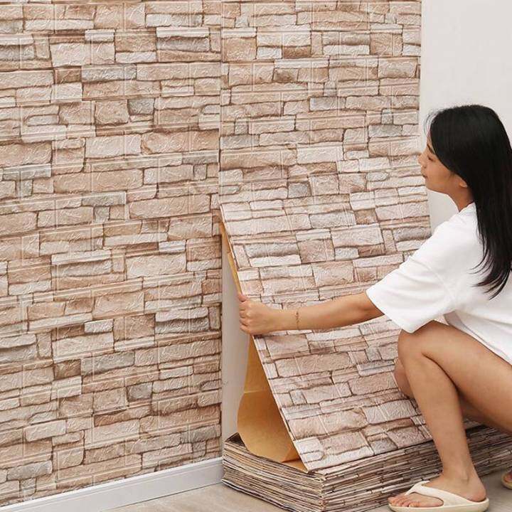 70cm*1m 3D Brick Pattern Wall Panels Wallpaper DIY Waterproof for Living Room Bedroom Kitchen Background Wall Decoration
