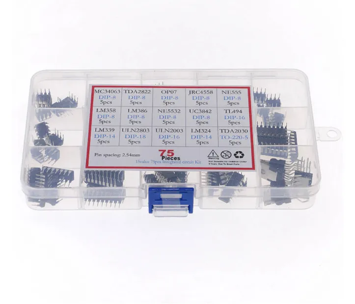 75-Piece Assortment: Includes a variety of the most commonly used DIP ICs, perfect for a wide range of electronics