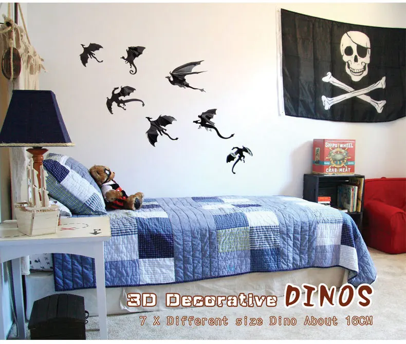 Transform your child’s room into an exciting, fantasy-filled space with our 7Pcs/Set Fantasy Halloween Fun Wall Sticker featuring 3D Dragon Wall Art. This unique set of dragon silhouettes is designed to spark imagination and adventure, bringing to life the mystical world of dragons and dinosaurs. Perfect for kids' rooms, this wall decor adds a fun, playful, and adventurous atmosphere, making it ideal for boys who are fascinated by mythical creatures, Halloween themes, or dinosaurs.