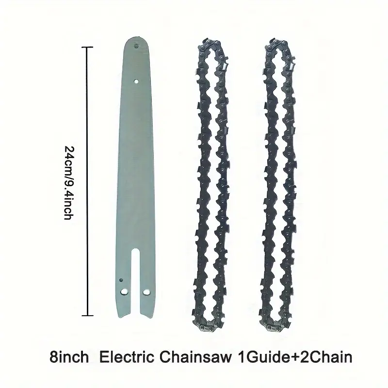 Upgrade your cordless lithium chainsaw with this 8-Inch Electric Chainsaw Guide Bar and Chain Kit, designed for precision cutting and long-lasting performance. This kit includes one guide bar and two sharp, durable chains, ensuring smooth operation and efficient cutting for various garden and yard tasks. Its universal fit makes it compatible with a wide range of cordless electric saws, making it the perfect choice for both professional landscapers and DIY enthusiasts. Built for reliability, this kit ensures your chainsaw is always ready for the toughest cutting jobs.