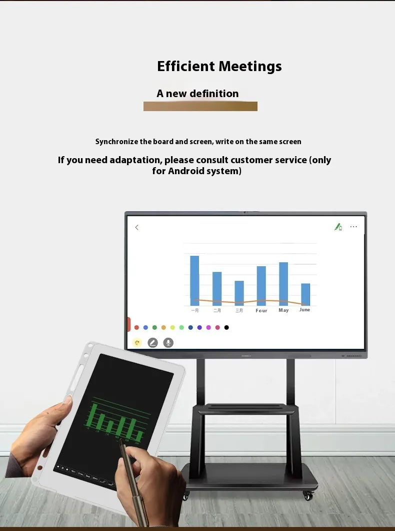 The 85-inch Master Software APP Electronic Writing Pad is an advanced, large-format digital writing tool designed to revolutionize the way you create, collaborate, and share ideas. Ideal for businesses, educational institutions, design studios, and creative professionals, this electronic writing pad offers a seamless integration of advanced technology and practical functionality. It features a vast 85-inch touchscreen display that can be used for drawing, writing, annotating, and brainstorming. The built-in software application and APP support further enhance its capabilities, offering a wide range of interactive features to improve productivity and creativity.