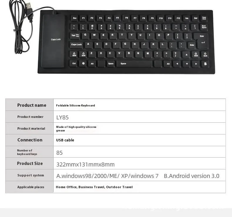 Perfect for users who are always on the move, the 85 Key Wired Silicone Mute Soft Keyboard is foldable, allowing you to store it easily in your bag, backpack, or suitcase. Its mini design makes it incredibly portable, so you can take it with you wherever you go. Whether you're traveling for business or working remotely, this compact keyboard ensures that you always have a reliable and comfortable typing experience without the bulk of traditional keyboards.