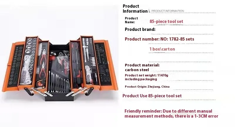 85-piece Auto Repair Kit Large Three-layer Toolbox