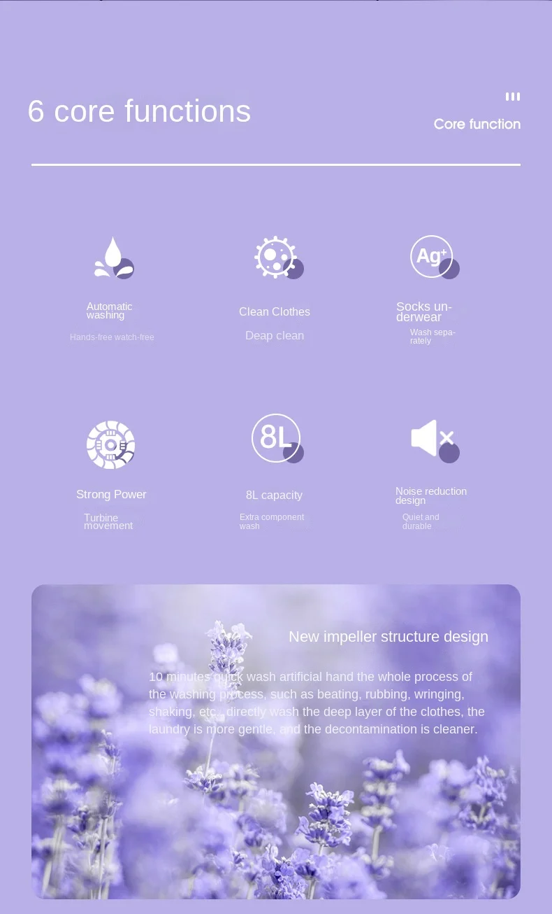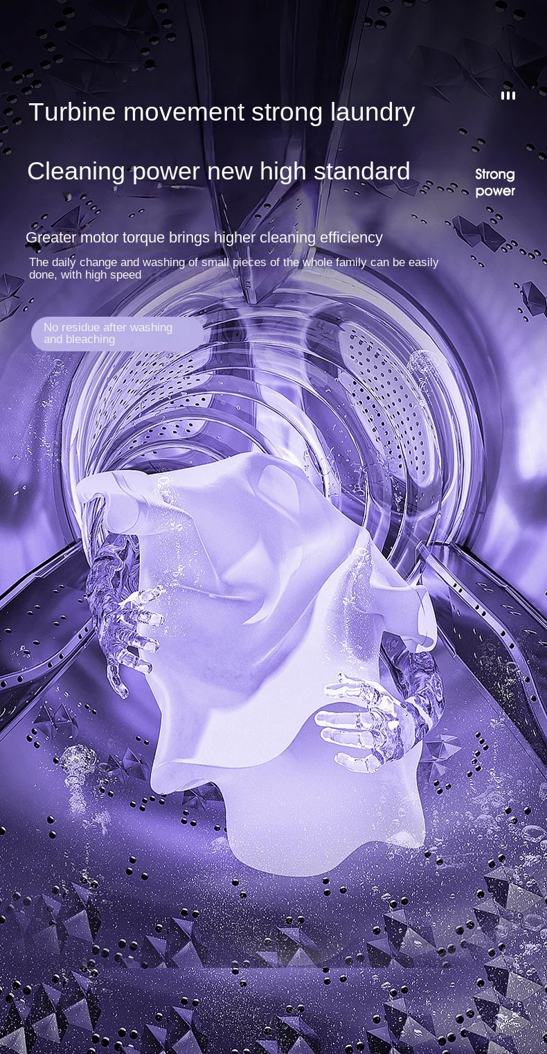 The 8-liter capacity is perfect for washing small items like socks, underwear, and other delicates. This compact size makes it an efficient