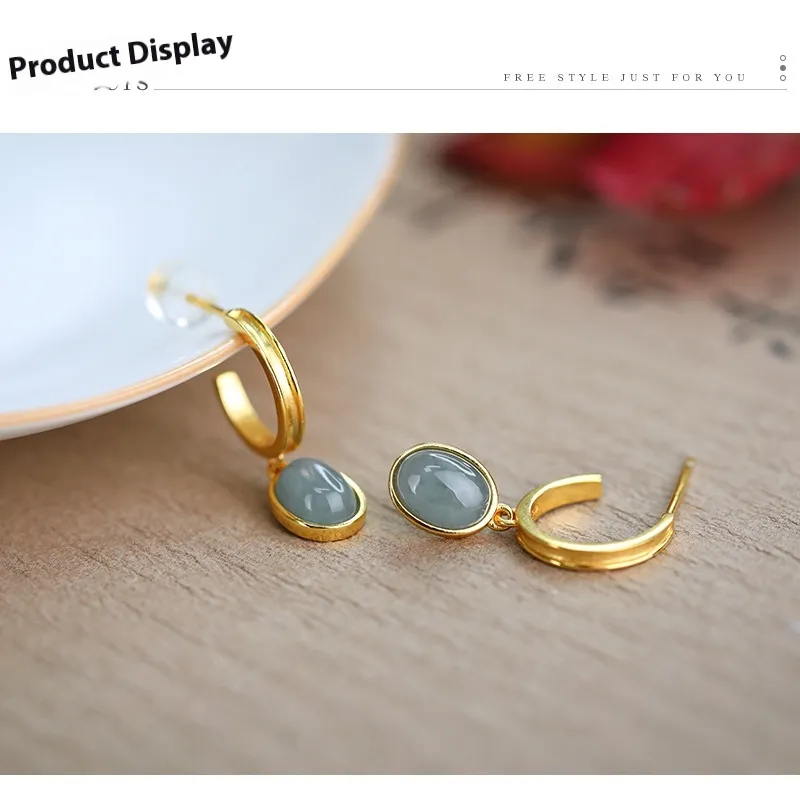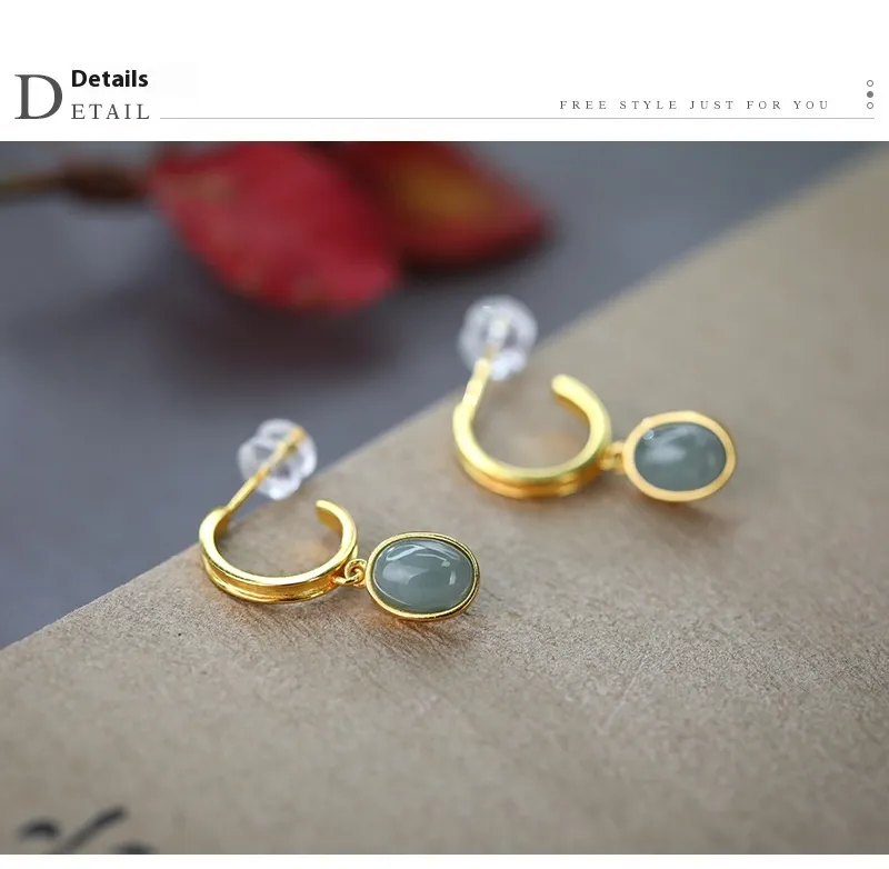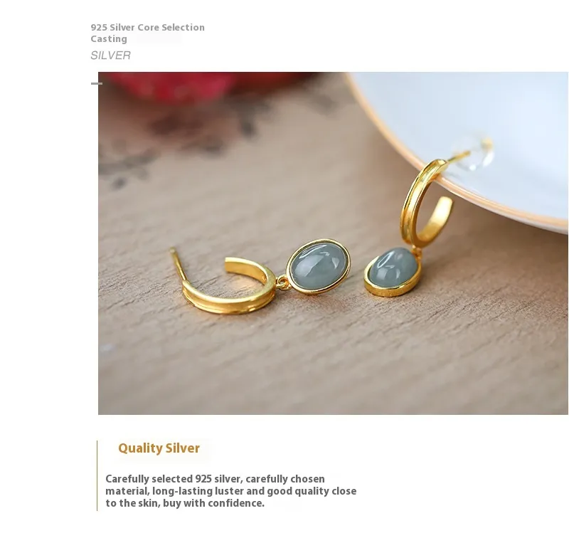 925 Silver Natural A Cargo Blue Water Jade Egg Surface Earrings