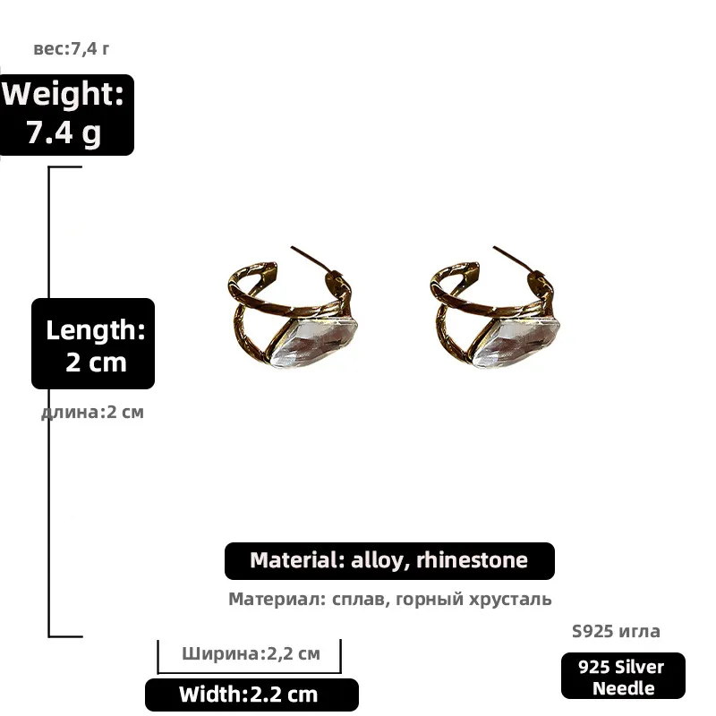 Color: Silver Needle-Golden C-shaped Earrings, Chinese product information, English product information