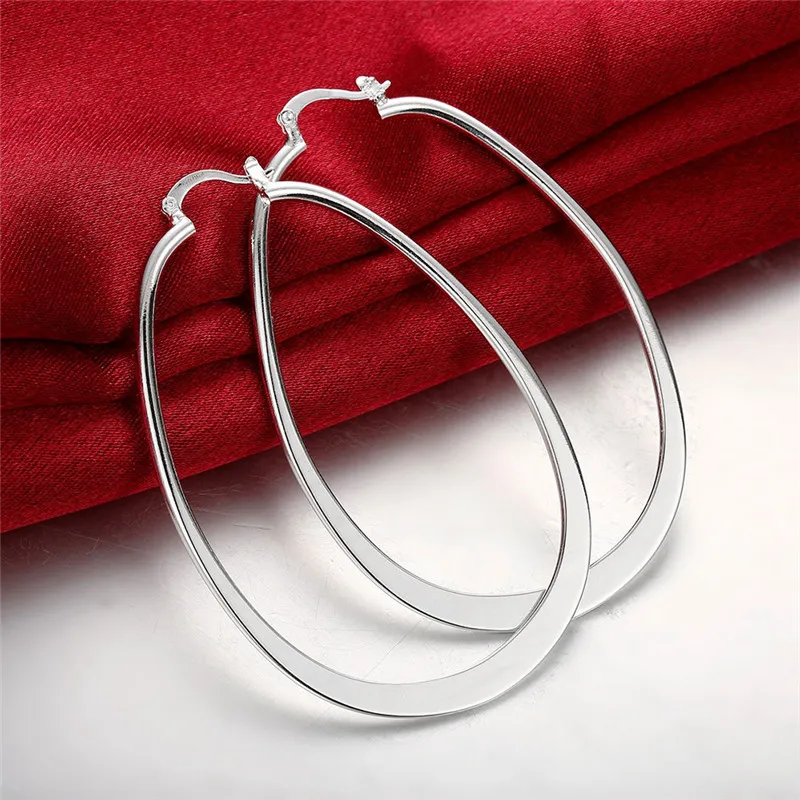 925 Silver Plated Hoop Earrings Female Big Ear Hoop