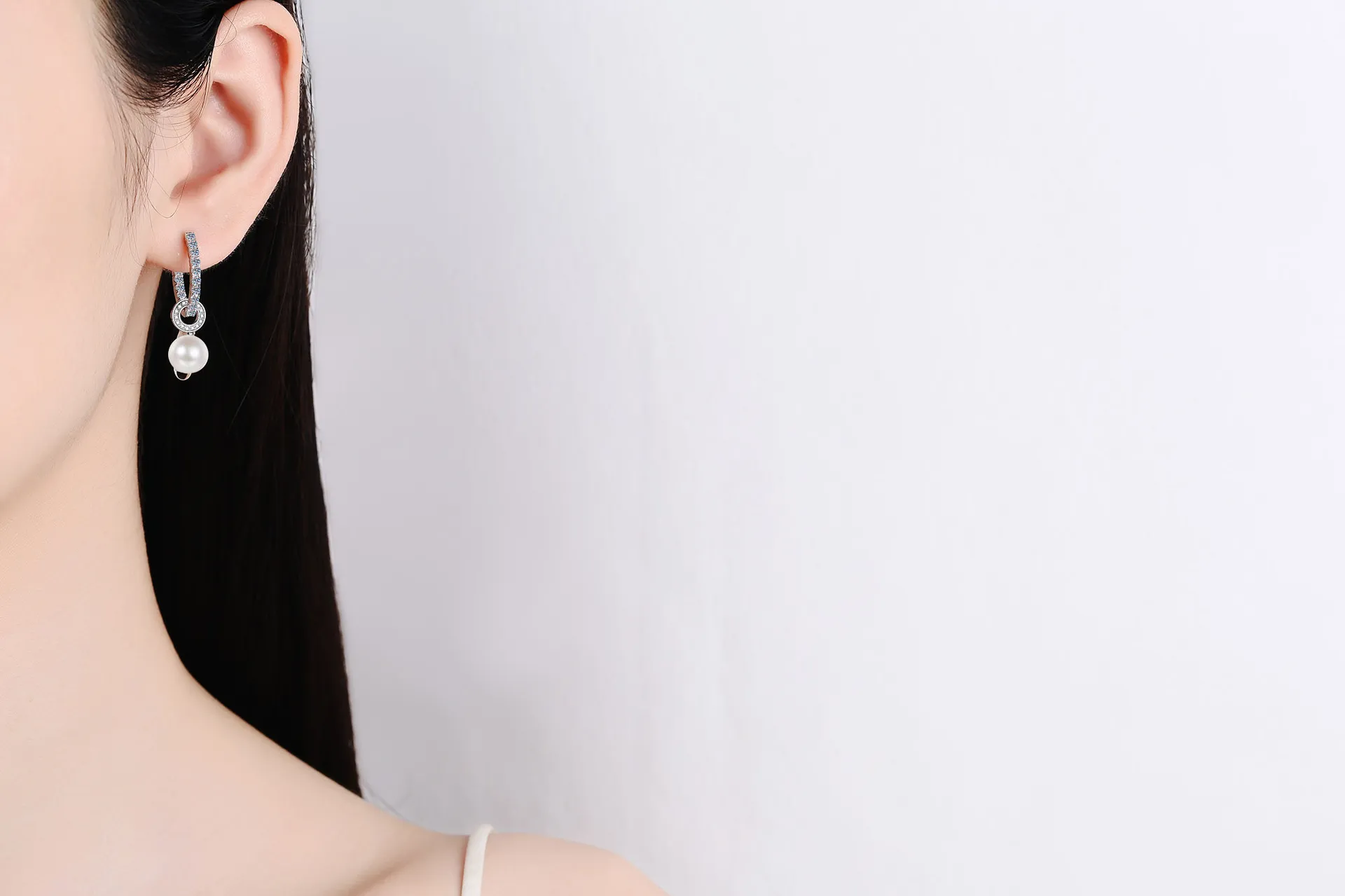 How to Wear the 925 Sterling Silver Freshwater Pearl Inlaid Moissanite Earrings