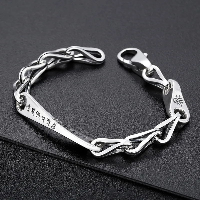 925 Sterling Silver Ornament Trendy Unique Six Words Mantra Bracelet