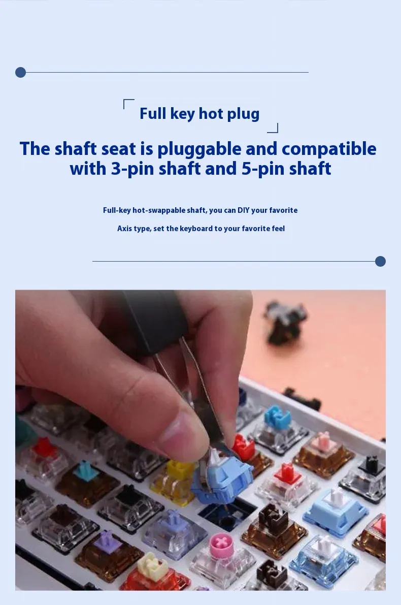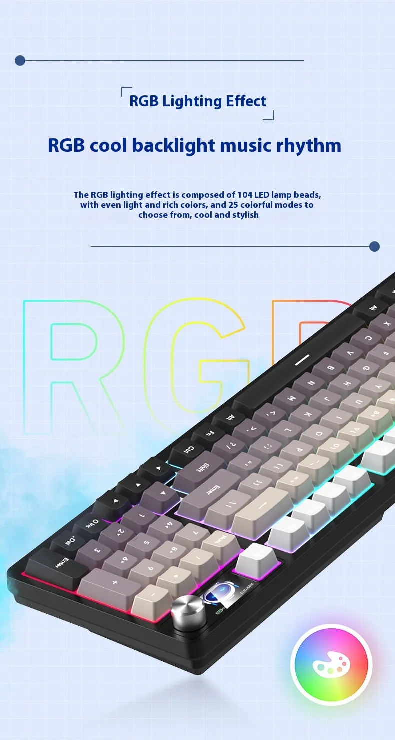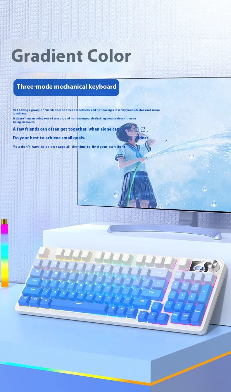 Equipped with three connectivity modes, including Bluetooth and wired options, it allows users to switch between devices effortlessly. Its mechanical-style keys provide tactile feedback for a comfortable typing experience, while the compact 98-key layout saves desk space without compromising functionality.