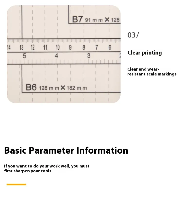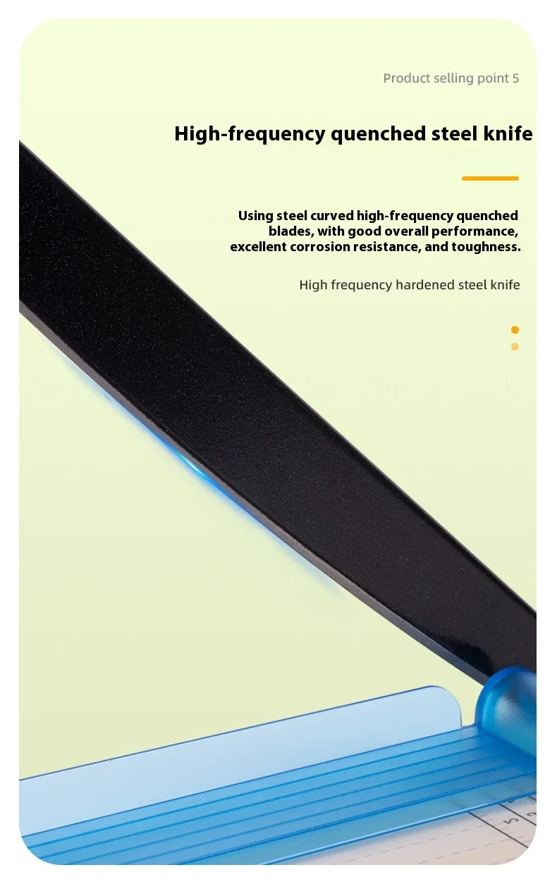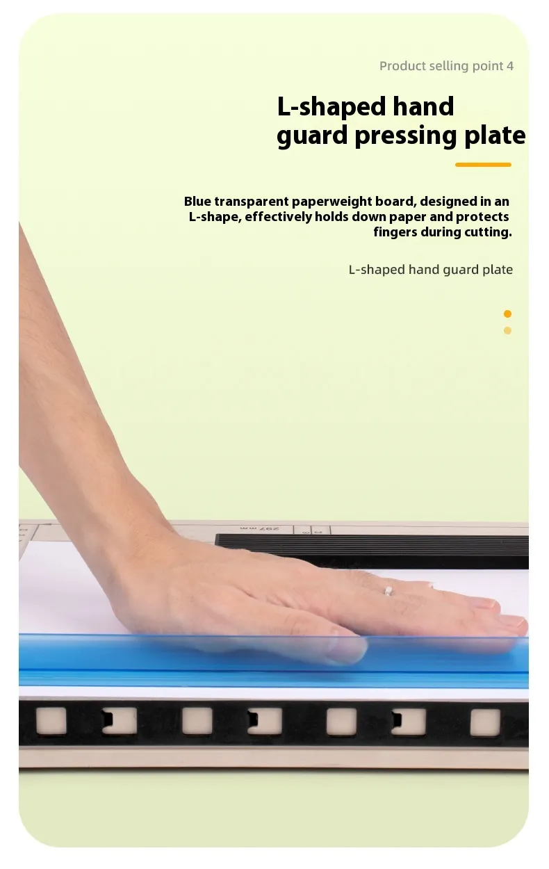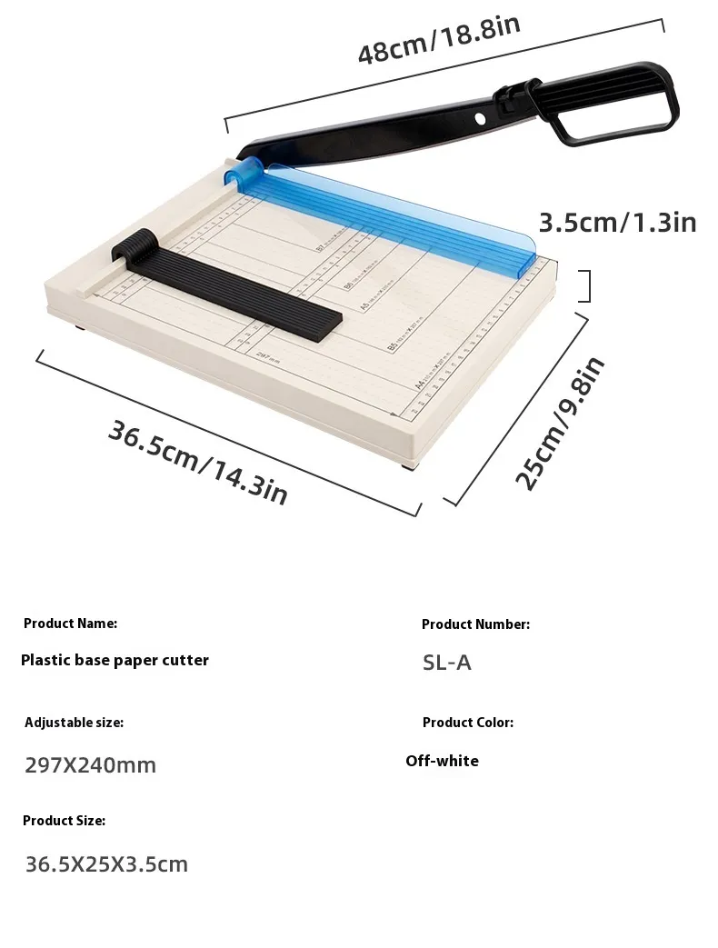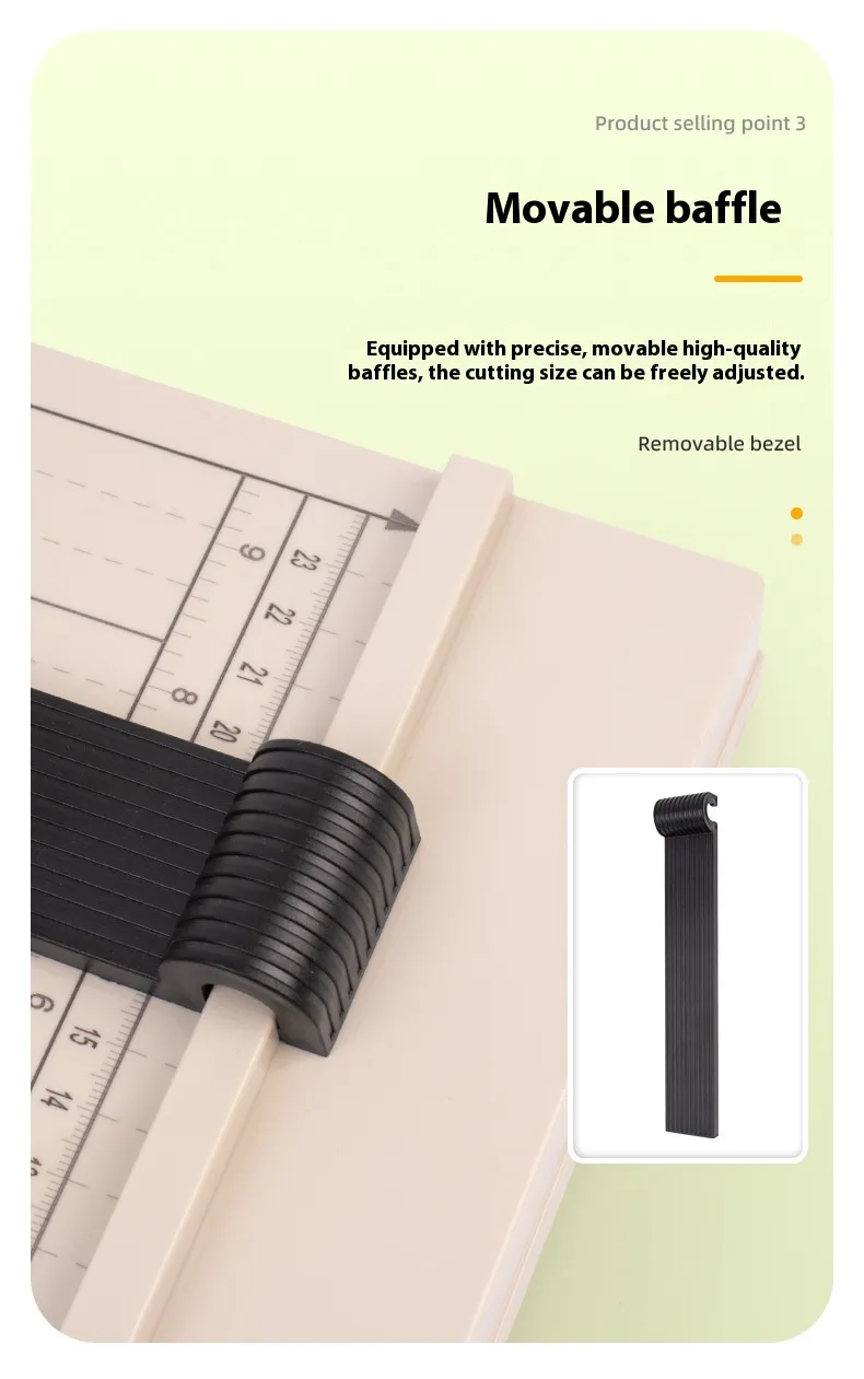 The baseboard is engineered from thick, laminated MDF or durable composite materials, reinforced with metal edging for structural integrity. A grid and measurement scale are printed or etched on the surface, allowing quick alignment and repeatability of cuts. Adjustable paper stops or side fences help secure sheets in place for batch work and ensure straight, consistent cropping every time.