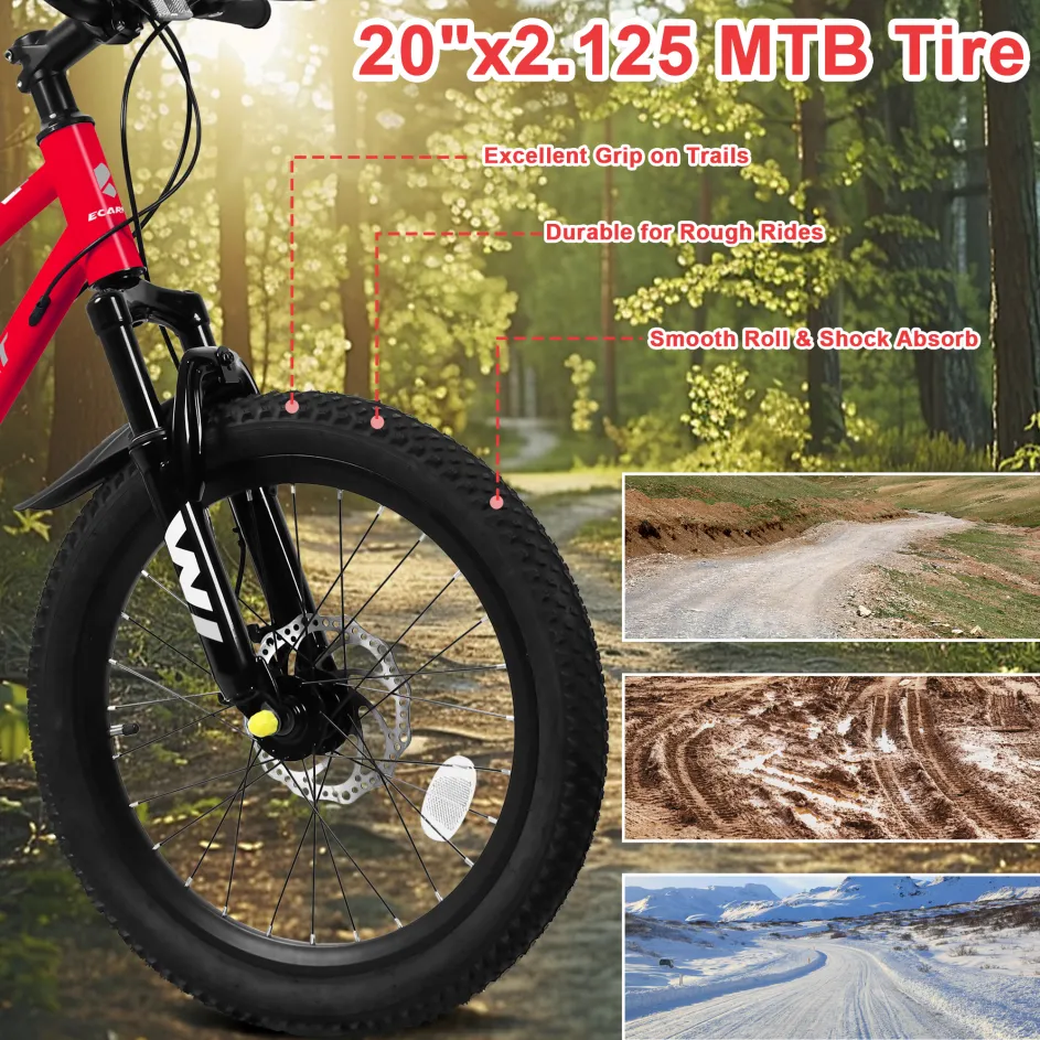 - 【20*2.125" Tires】— The Ecarpat Kids' Bicycle tires are made of high-quality rubber and have a strong puncture and abrasion resistance, 20"*2.125" tires are easier to get on and allow children to focus on having fun without fear of falling!