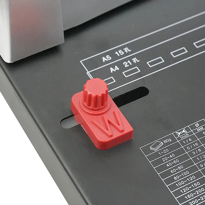 This machine is ideal for commercial and office use, providing a clean and precise hole punching experience. It ensures uniform holes, which are crucial for creating professional-grade bound books, manuals, or files. The 21-hole and 10-hole configurations are specifically designed to work with standard clamp strips, making it perfect for binding a variety of documents.
