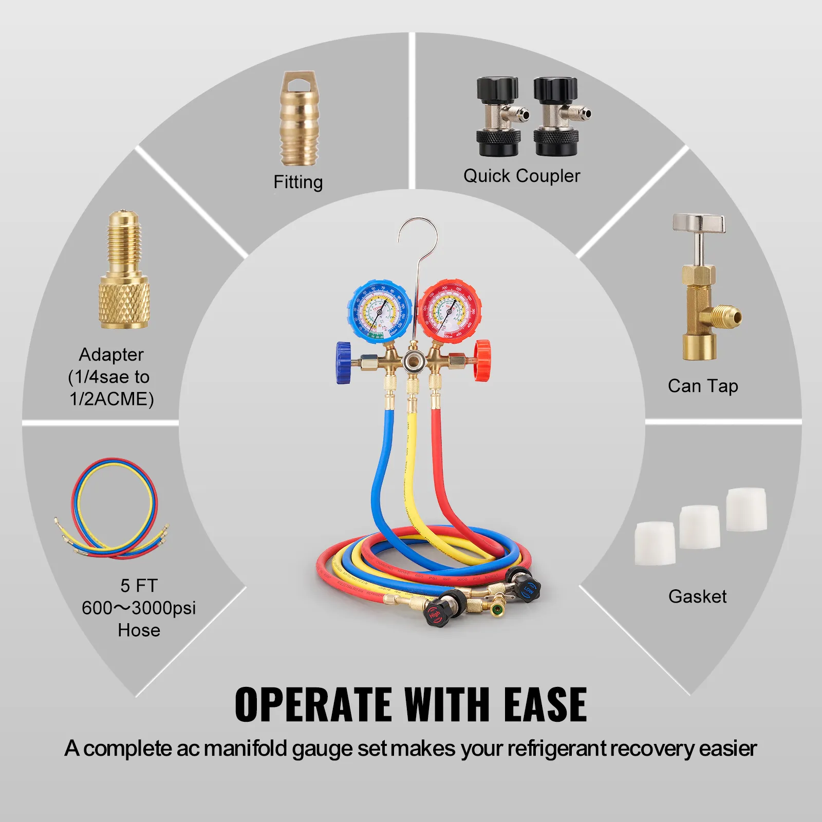This AC Manifold Gauge Set stands out due to its accuracy, durability, and ease of use. Whether you’re an HVAC professional or a DIY enthusiast, this set provides everything you need to perform quick and reliable AC diagnostics. Its high-quality construction and color-coded hoses make it a user-friendly and reliable tool, ensuring that you can work confidently and efficiently. Choose this AC manifold gauge set for accurate results and long-lasting performance.