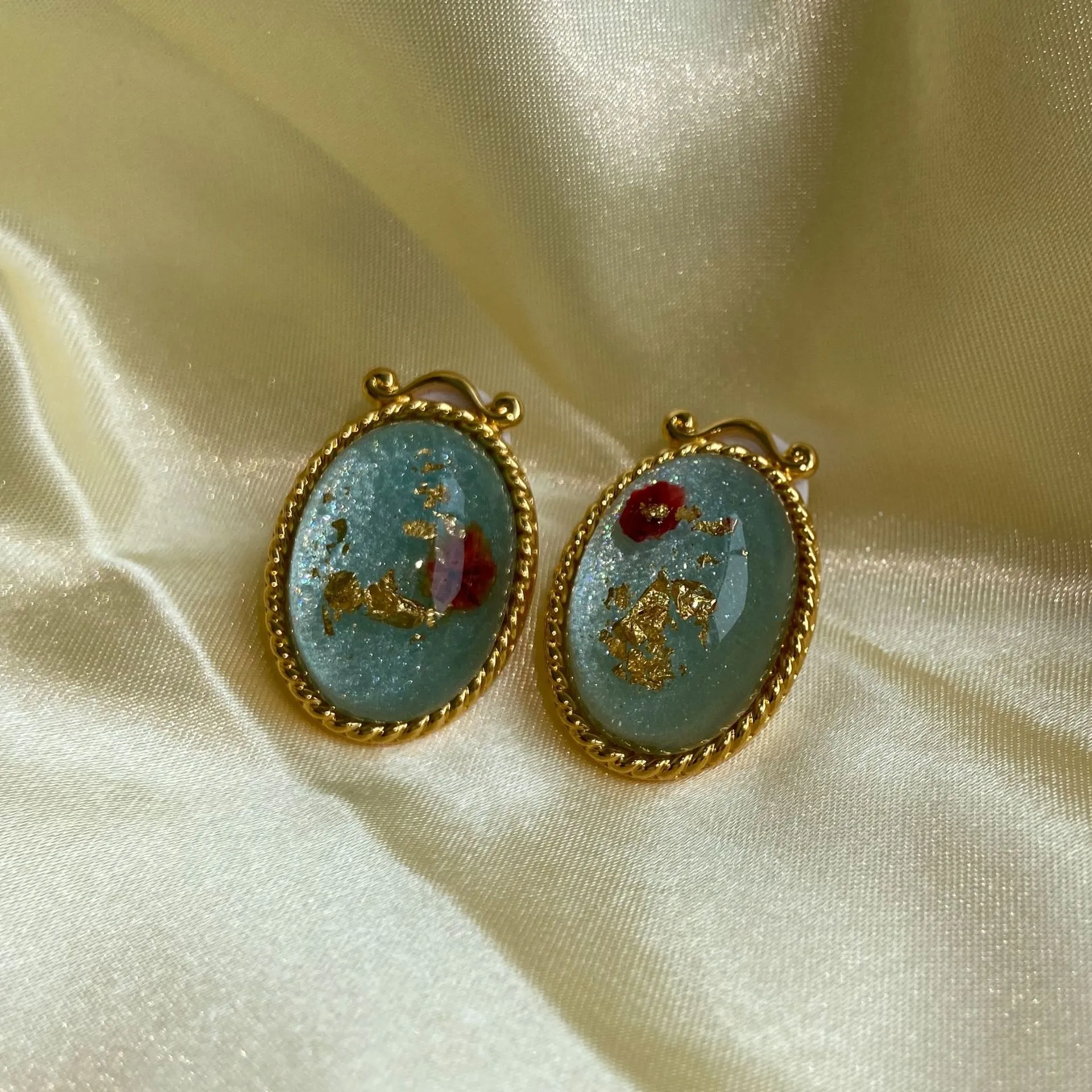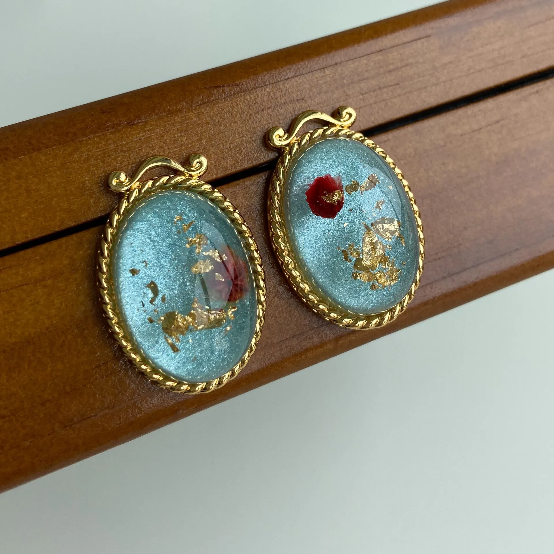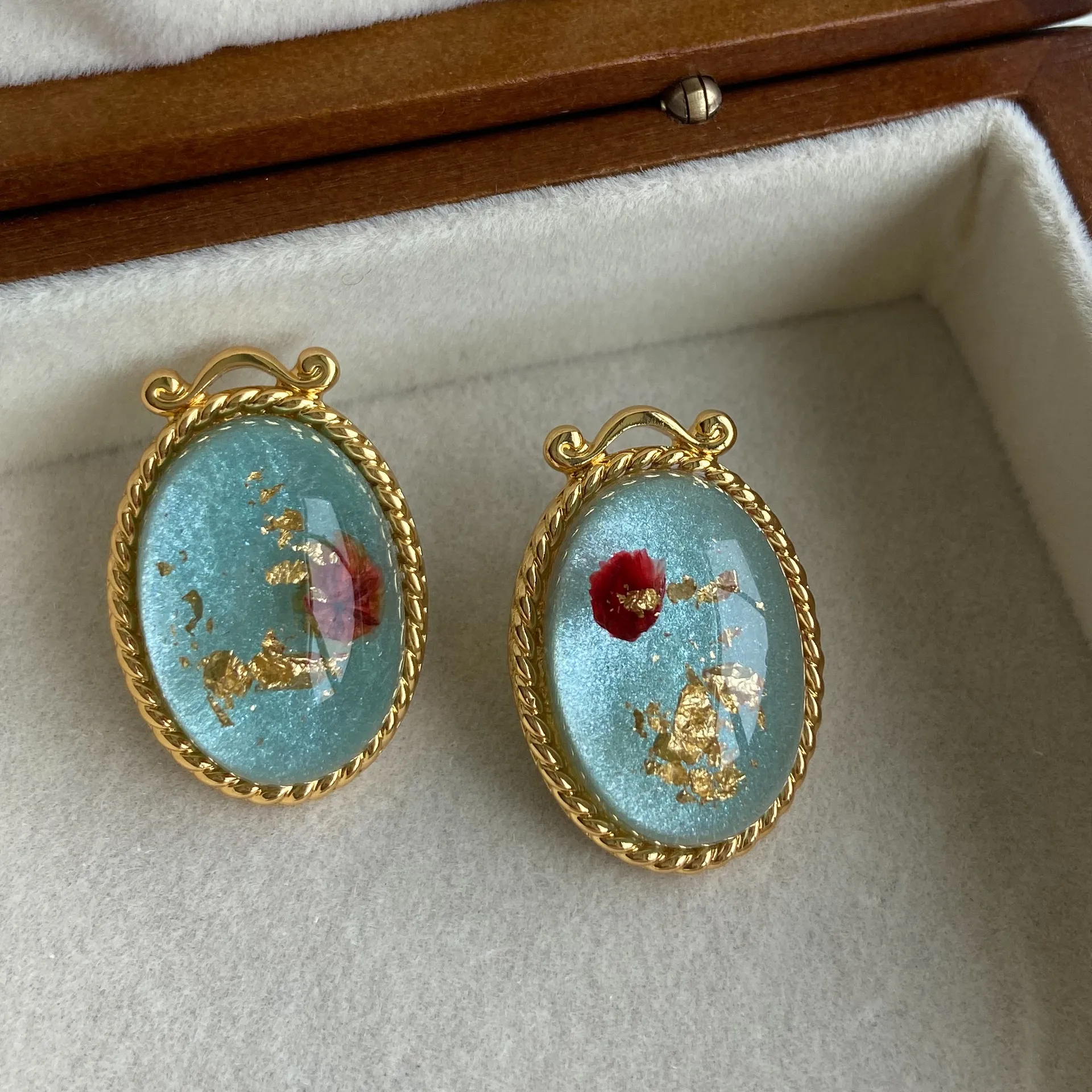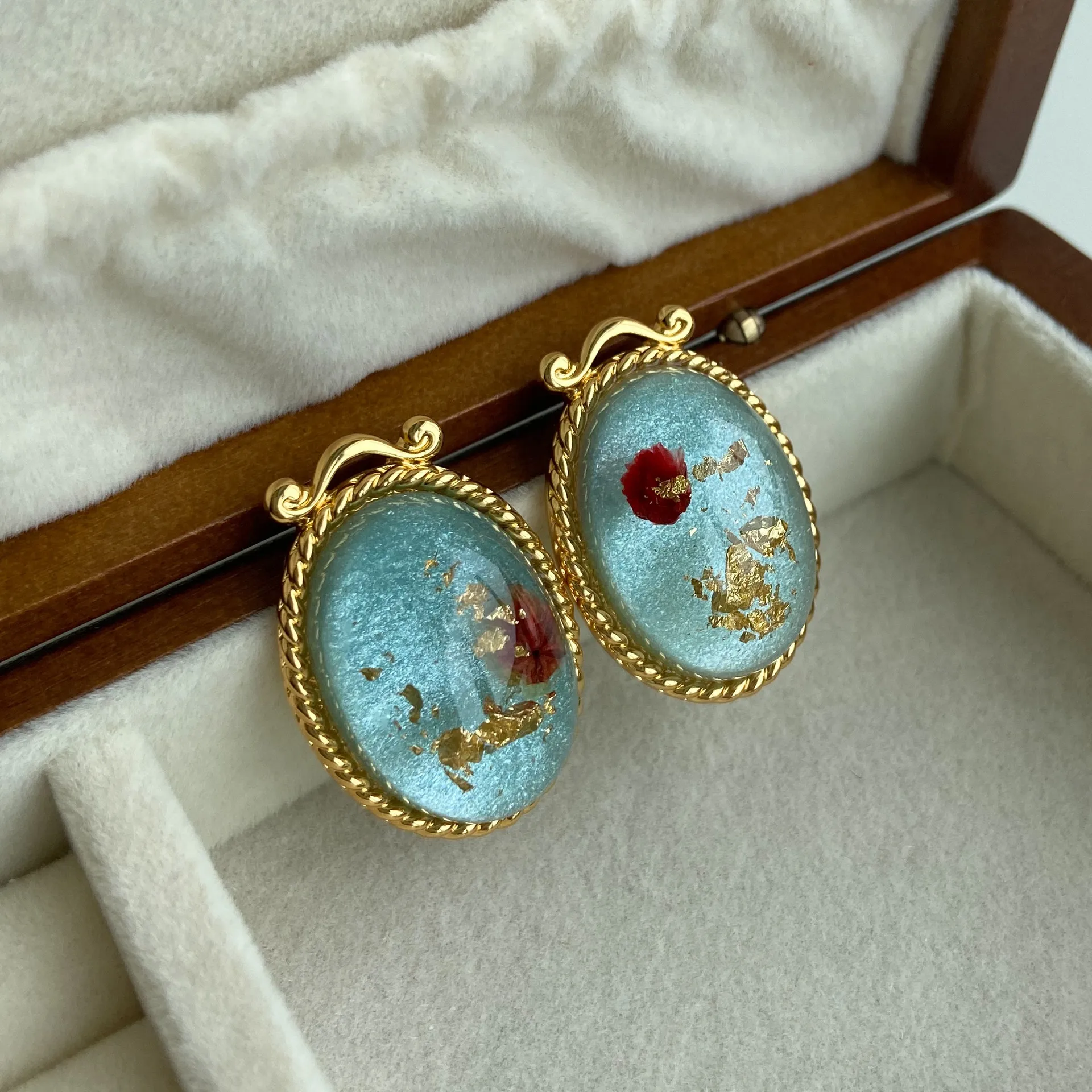 Acrylic Dried Flower Gold Foil Inlaid Earrings