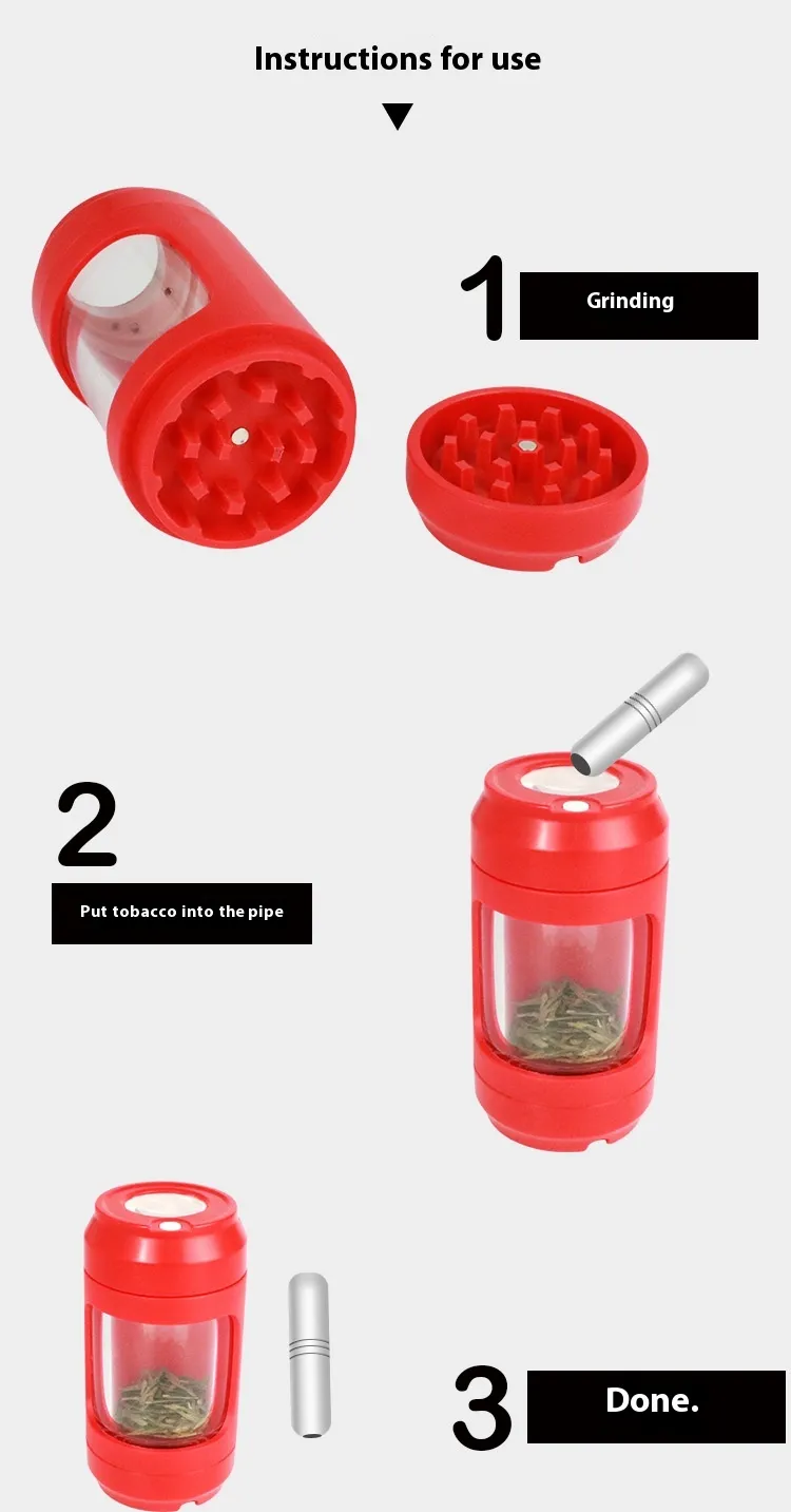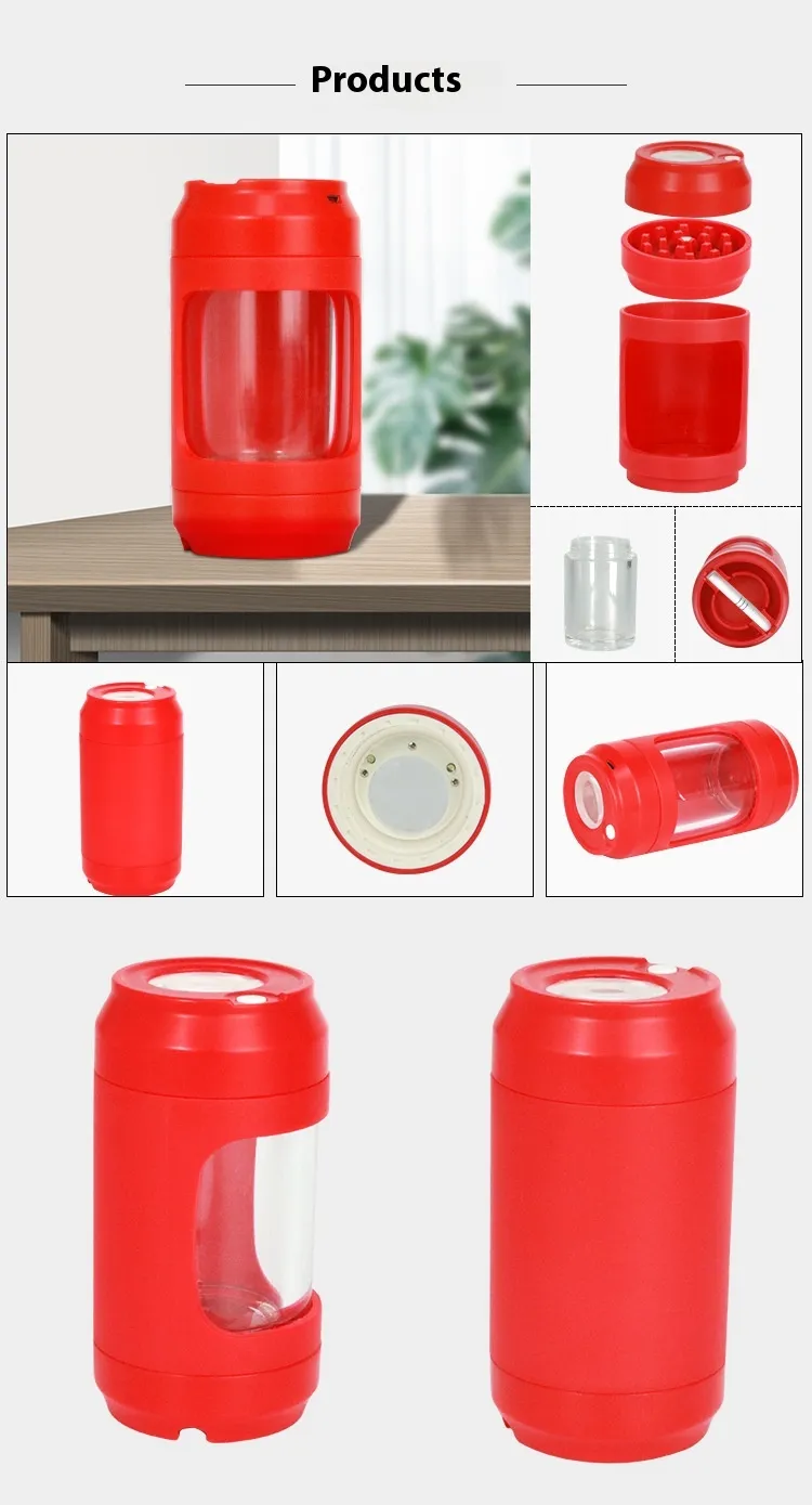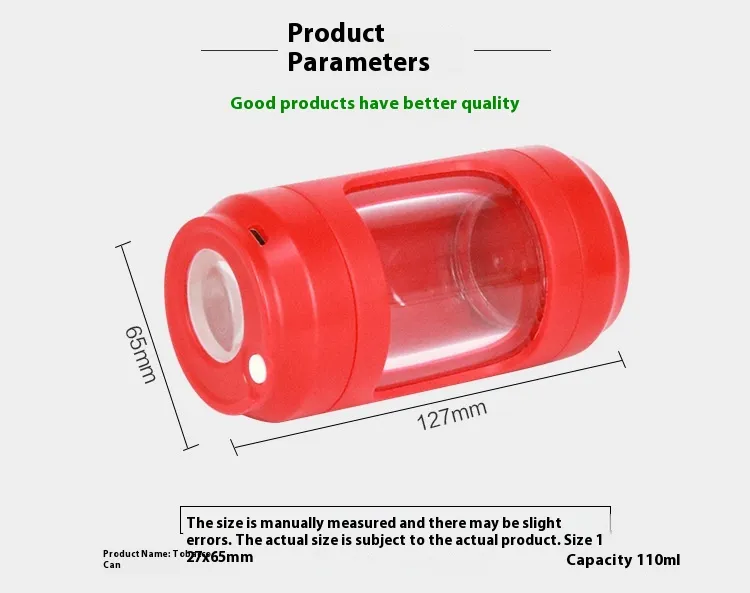 Acrylic Sealed Plastic Cigarette Grinder Smoke Eliminator LED Lamp Can Tobacco Storage