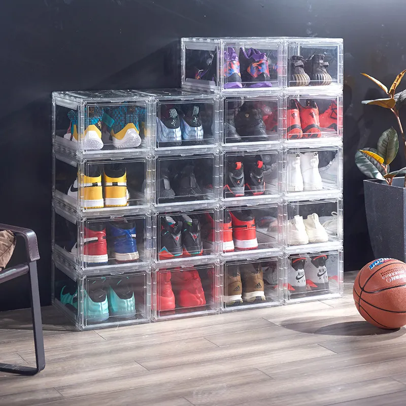 Elevate your shoe storage with our Acrylic Shoe Box Display, designed to showcase your prized footwear collection in a sleek, modern, and organized way. Whether you're an avid shoe collector, a fashion enthusiast, or simply someone looking to tidy up their closet, this acrylic display box offers a transparent, space-saving solution to keep your shoes safe and beautifully displayed.