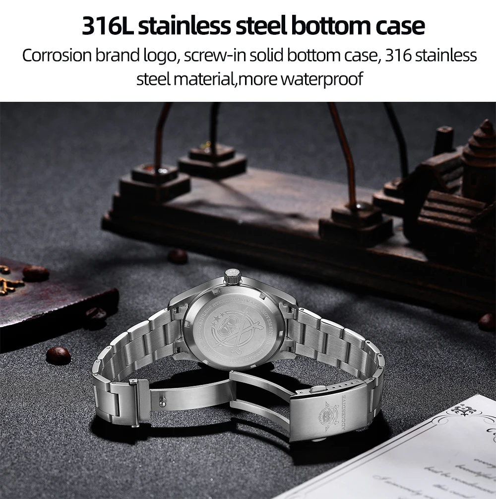 • 200m Water Resistance :With a water resistance depth of 20Bar, this mechanical wristwatch is perfect for diving and other water-related activities, ensuring maximum protection.