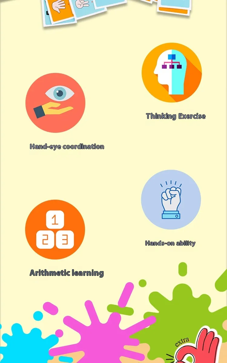 The Addition and Subtraction Finger Math Cognitive Puzzle Arithmetic Toys are an effective, interactive, and fun way to help young children develop their addition and subtraction skills. With its colorful design and engaging playstyle, this toy makes math learning feel like a fun game. By using their fingers to solve problems, children will reinforce their cognitive and arithmetic abilities, ensuring they have a solid foundation in early math concepts.