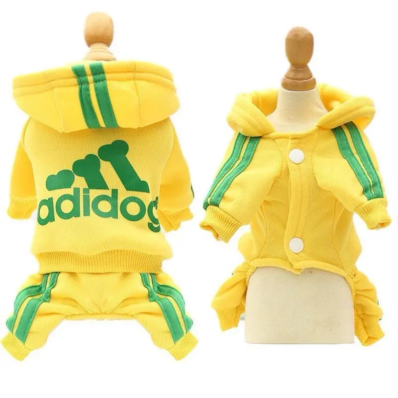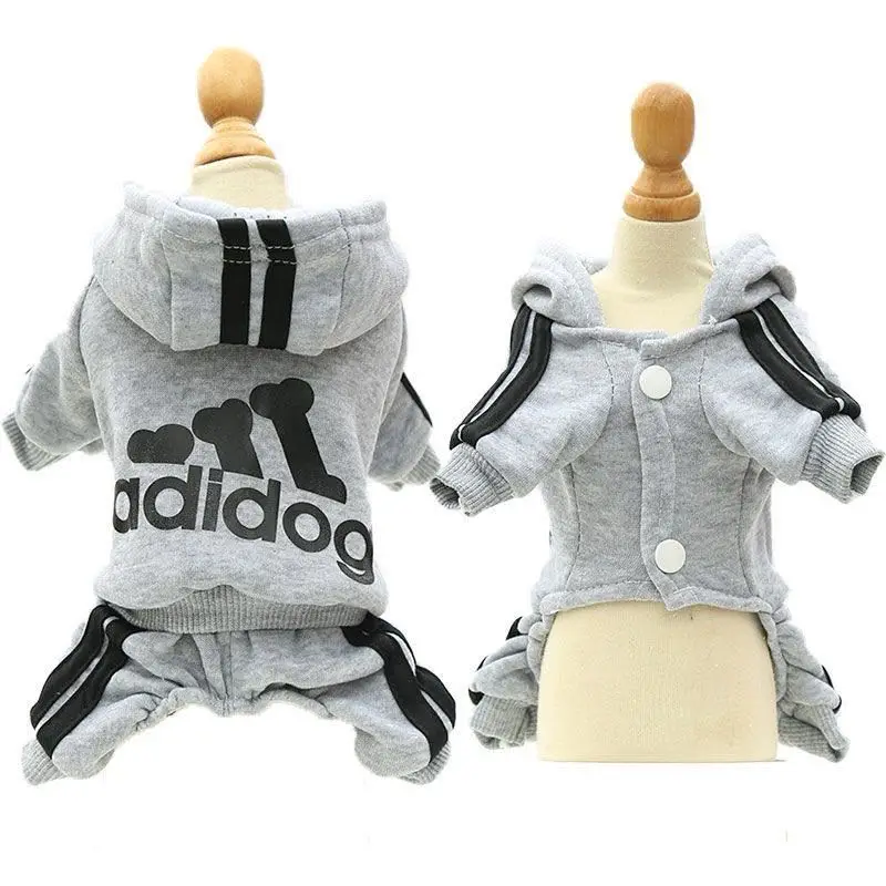 The Adidog clothes dog jumpsuit is not only functional but also fashionable. Its urban-inspired design with the signature logo allows your pet to look as stylish as their owner. Whether you're out and about or just hanging out at home, your dog will definitely turn heads in this trendy hoodie sweatshirt.