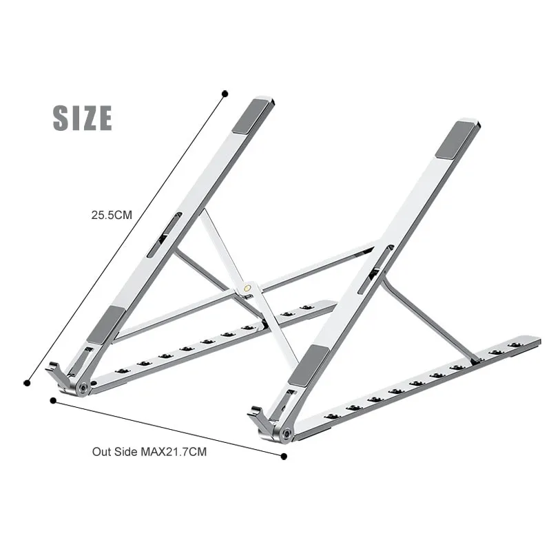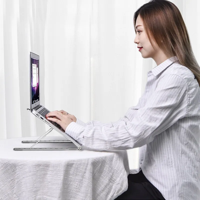Ultra-thin foldable laptop stand, the ergonomic elevation angle protects the user's cervical spine and eye health. Aluminum alloy is
