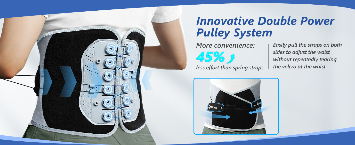 - 【Innovative Dual Strap Pulley System for a Custom Comfort Fit】This lower back brace features an innovative dual strap pulley system, allowing you to easily adjust the level of support and compression to suit your needs, creating a personalized comfort experience. With elastic, adjustable straps, it ensures a better fit, enhanced comfort, and optimal support. Whether you're at the office, at home, or at the gym, it guarantees unmatched support in any situation.