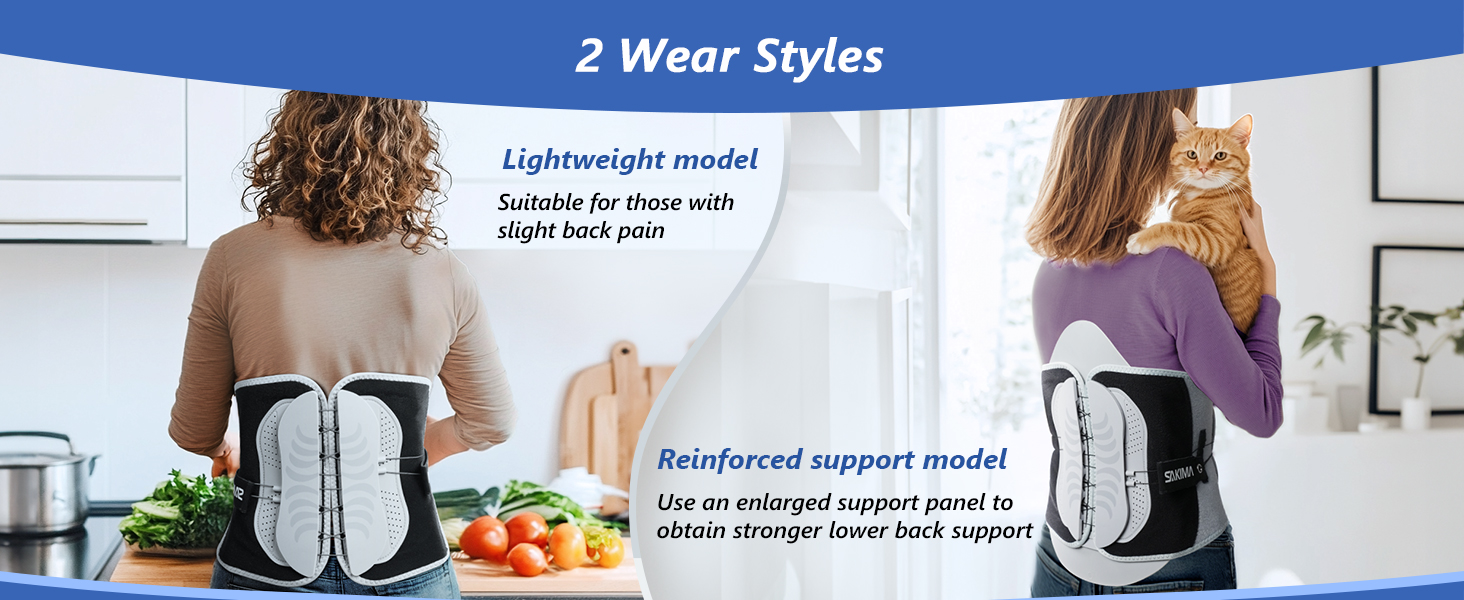 - 【Two Wearing Styles to Meet Different Needs】Based on different lower back requirements, the Back Brace offers two wearing styles: Lightweight - suitable for first-time users or people with mild back pain; Enhanced support - used with the enlarged support panel and side lumbar support panels for stronger lower back support. You can choose the style that best suits your specific back condition.