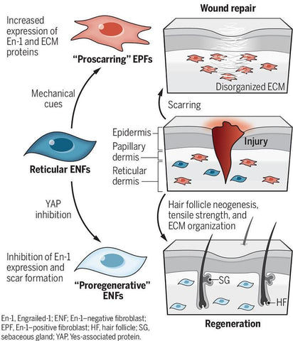 regulation of fibroblast production and also reduces collagen production. Essentially, this allows skin to “breatheâ€, improving the tissue