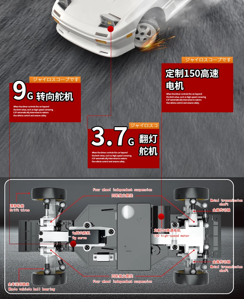 AE86 Model RX-7 FC 1:18 RC Drift Car - 2.4G Remote Control with ESP Gyroscope and LED