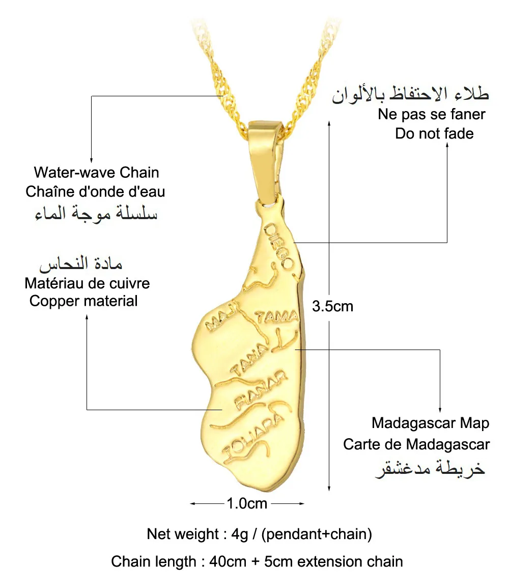 Africa Madagascar Map Pendant Necklace