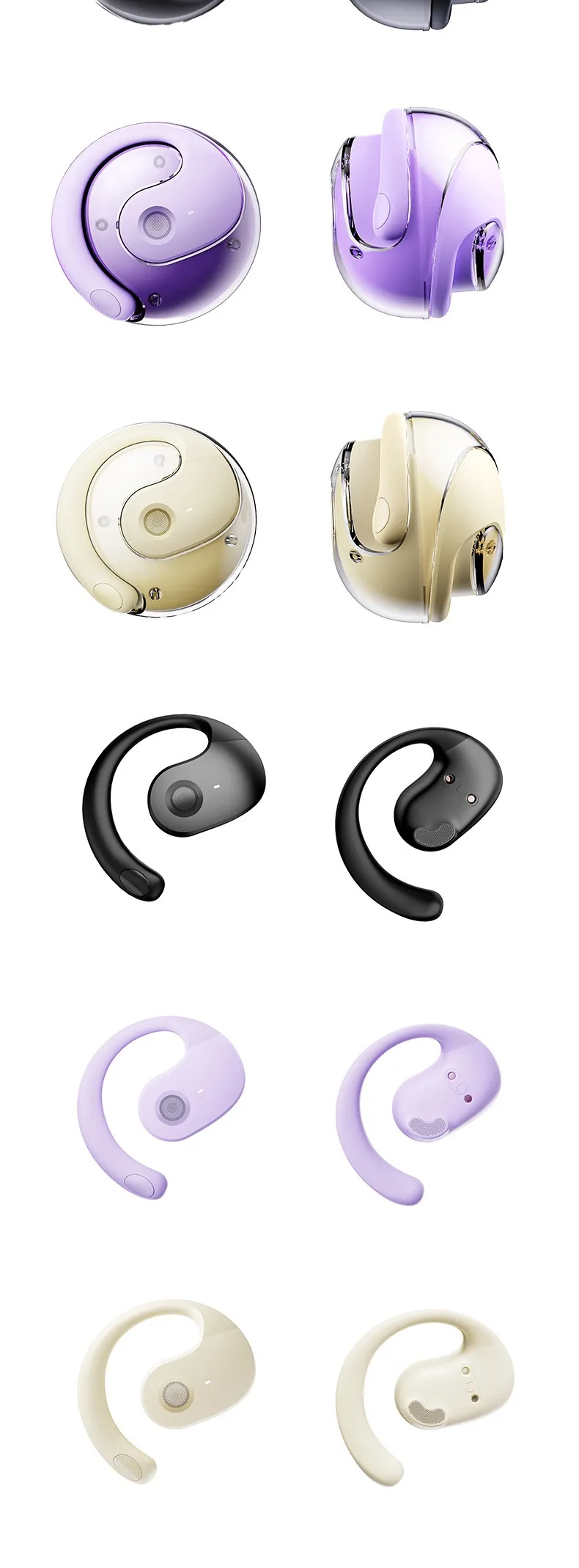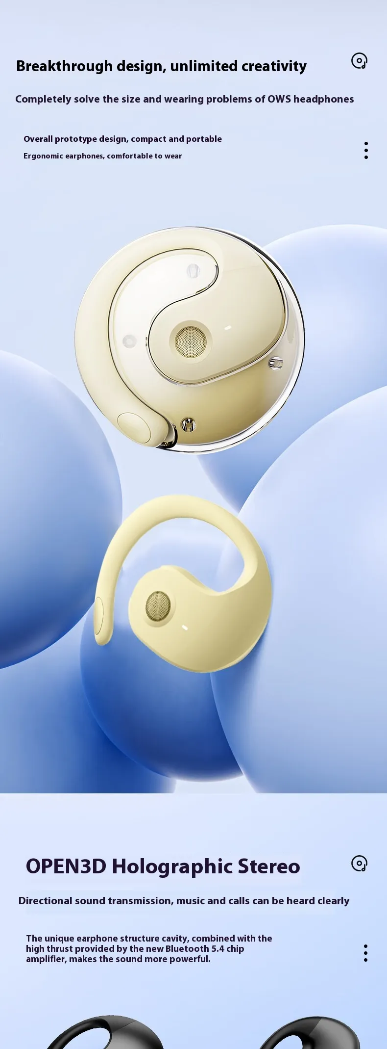 The ergonomic ear-mounted design ensures a secure and comfortable fit for extended wear. The unique coconut ball shape adds a modern and stylish touch while providing stability during movement.