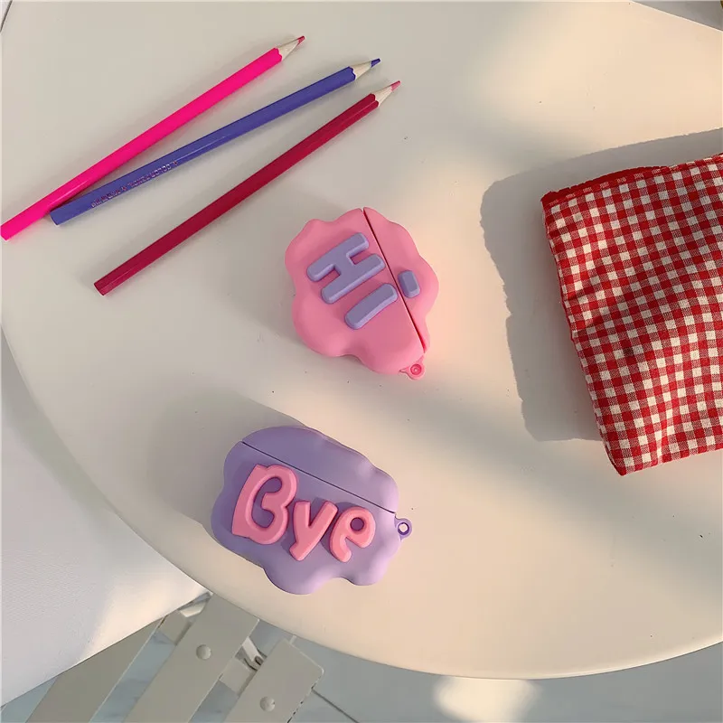 AirPod 2 Case 3D HI BYE Cloud Letter Cartoon Soft Silicone Wireless Earphone Cases For Apple Airpods Case Cute Cover