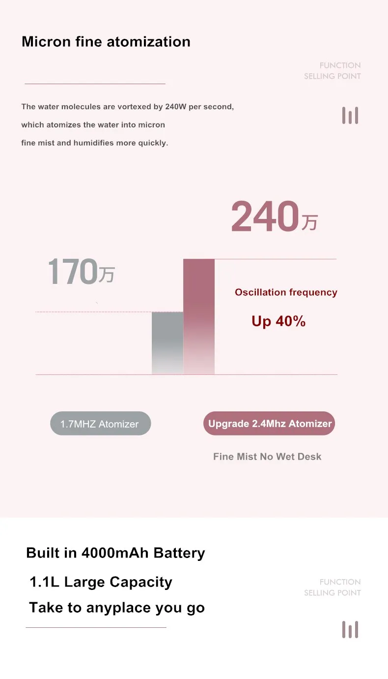 Humidification anytime, anywhere, with its own battery, large capacity, wherever you go