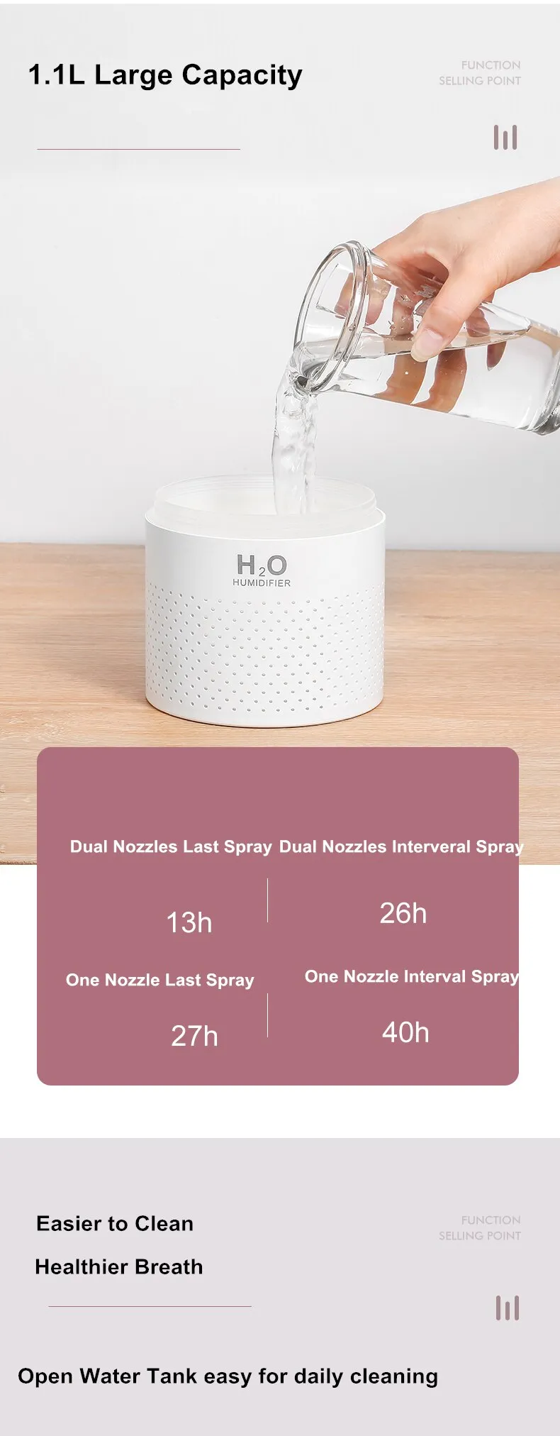 Product Name :1100ML large capacity wireless Air Humidifier Dual Spray Nozzles