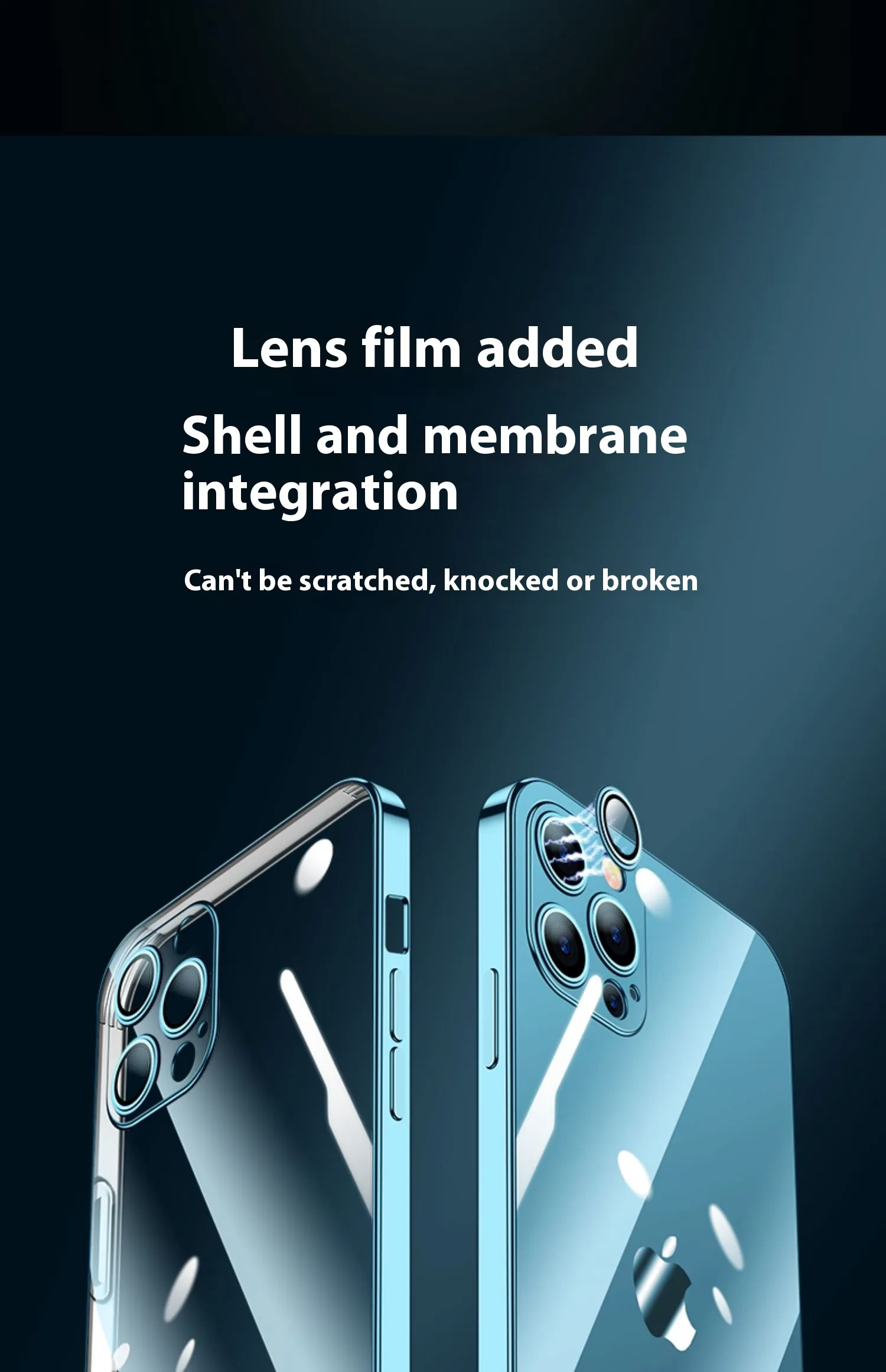 📱 All-inclusive Electroplating Transparent TPU Phone Case with Lens Protector