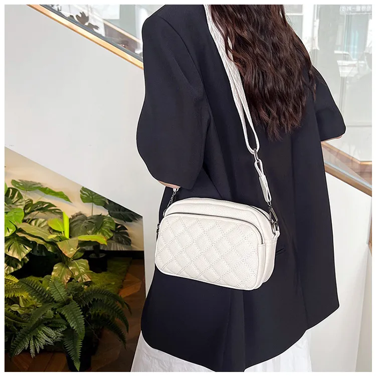 All-match Diamond Pattern Soft Leather Shoulder Messenger Bag