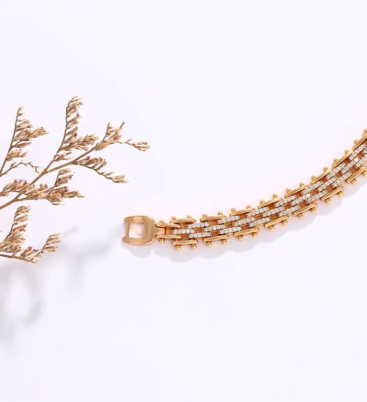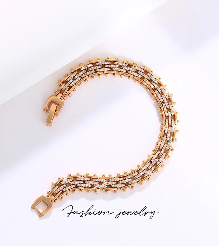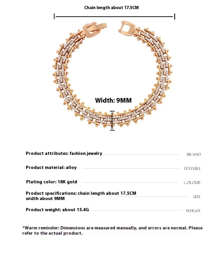 Alloy Jewelry Fashion Personality Micro-inlaid Thick Type Full Zirconium Bracelet