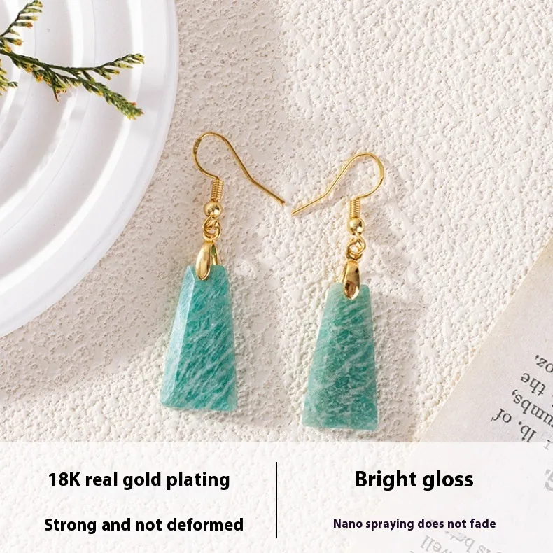 Amazonite Rough Stone Cut Trapezoid Earrings European And American Popular