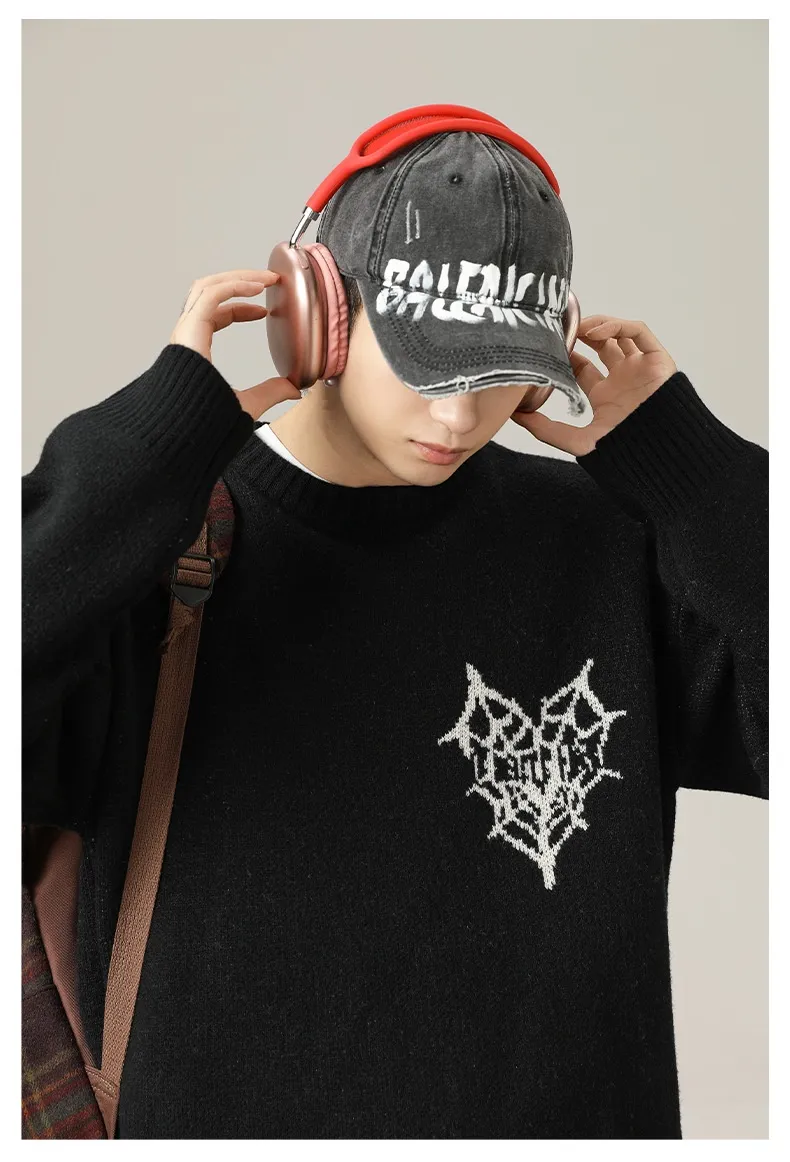 Embrace Vintage Charm with the American Retro Hand-Painted Jacquard Round Neck Sweater