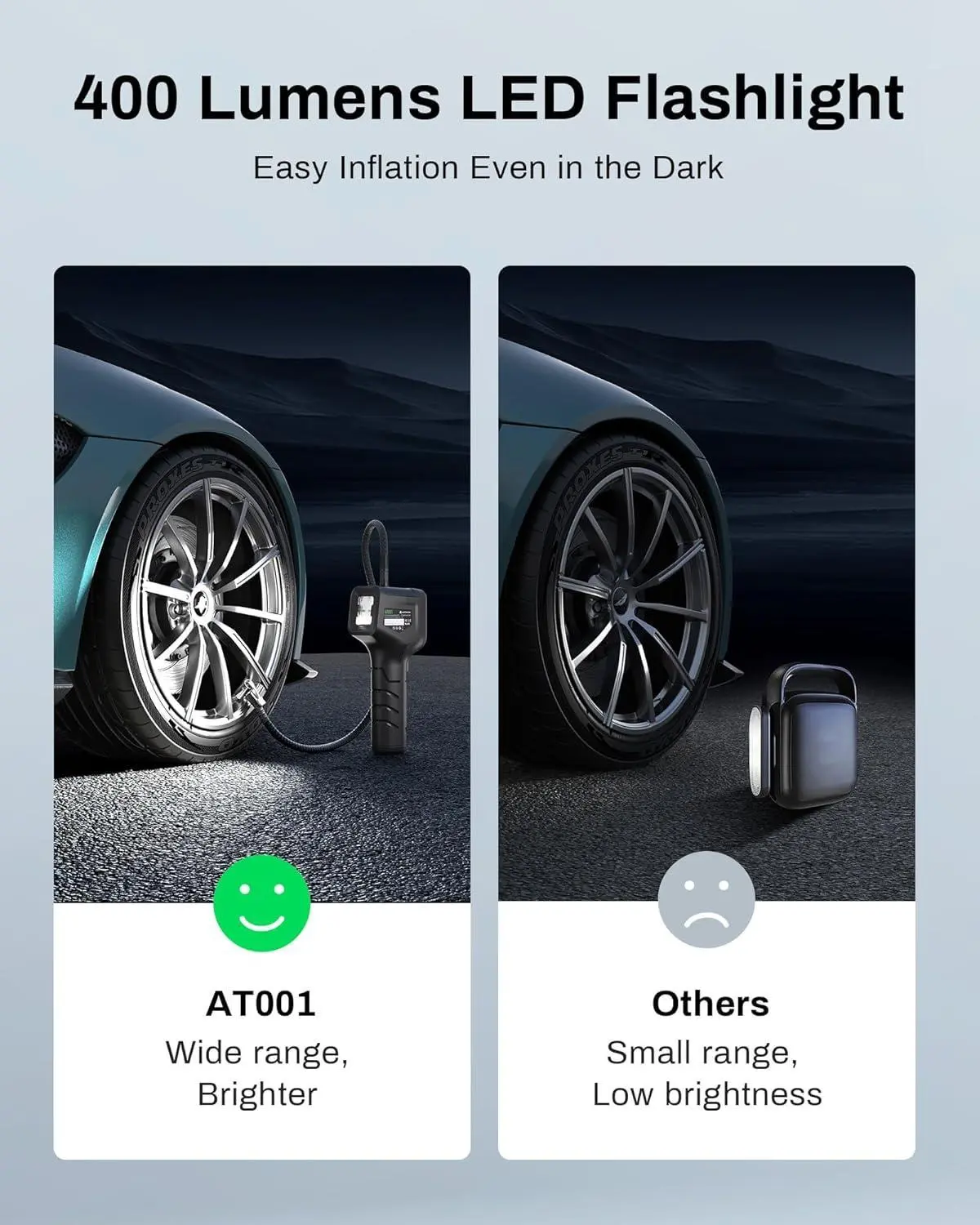 The AMPBANK AT001 is the ideal solution for anyone who wants a reliable, portable, and powerful air pump for their tires. Its 150PSI capacity, real-time tire pressure gauge, LED light for nighttime use, and versatility across multiple vehicle types and inflatables make it an essential tool for car owners, cyclists, and sports enthusiasts alike.