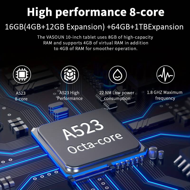 The NEWISION Android 15 2-in-1 tablet is built with a fast Octa-Core processor and 16GB RAM (4GB base + 12GB virtual expansion) to give smooth performance across apps, multitasking, online learning, and casual gaming. With 64GB of internal storage and support for 1TB expandable memory, you can save videos, photos, school documents, downloads, and apps without worrying about storage limits.