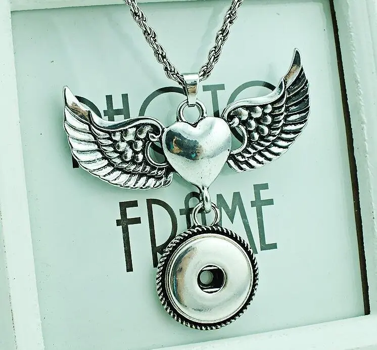 Angel Wings Button Pendant Necklace