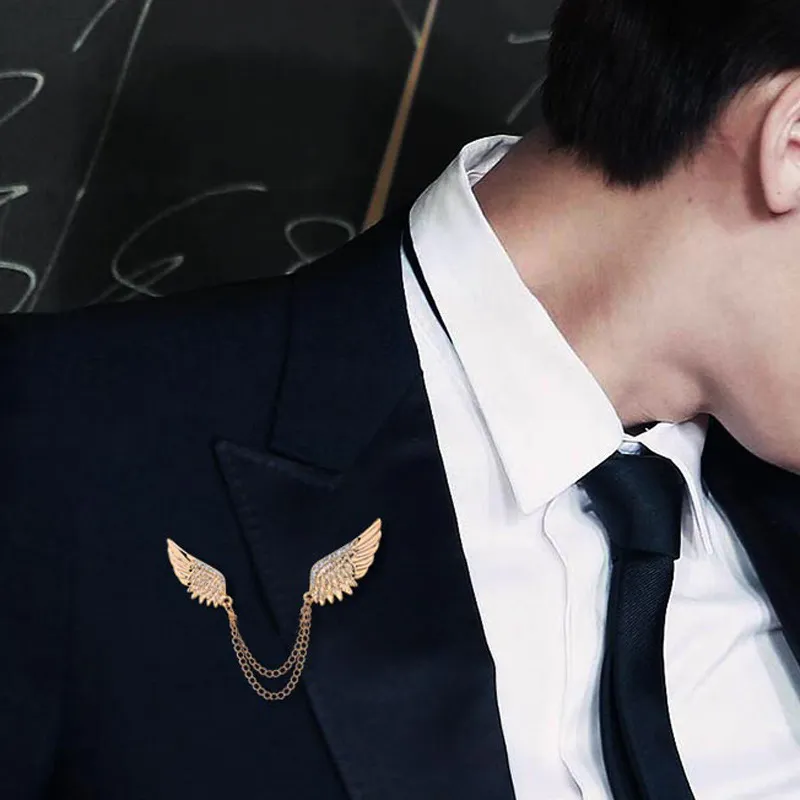The Angel Wings Chain Pin Buckle Collar Pin isn’t just a functional accessory—it’s a statement piece. Whether you're