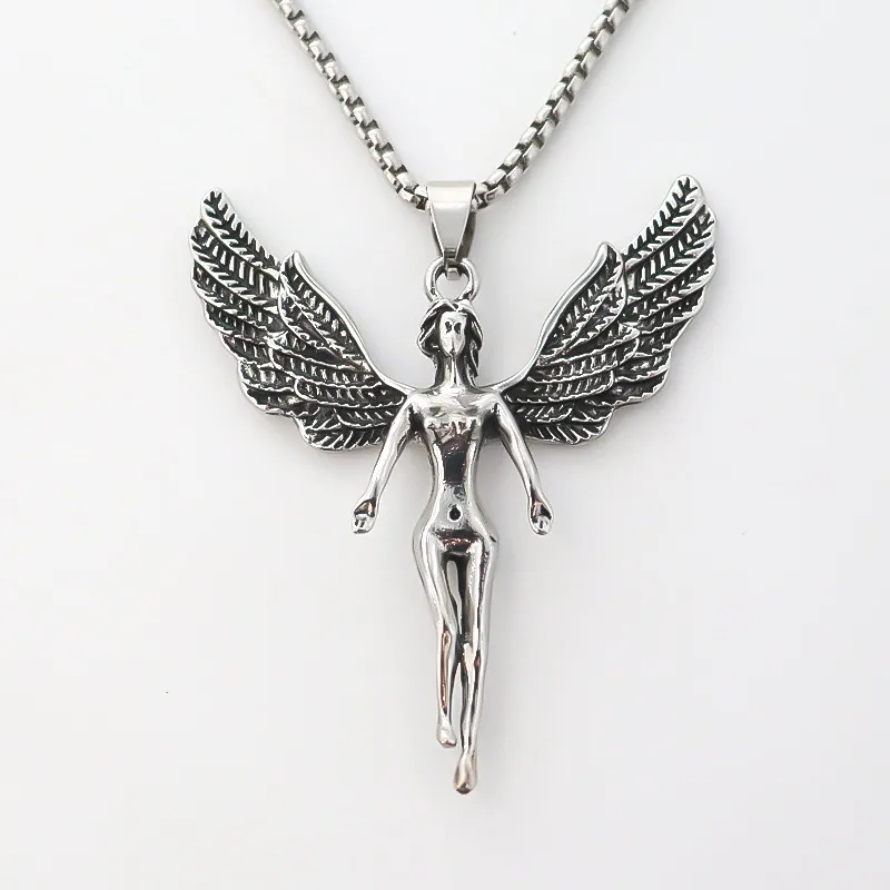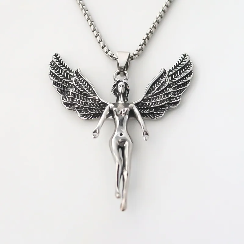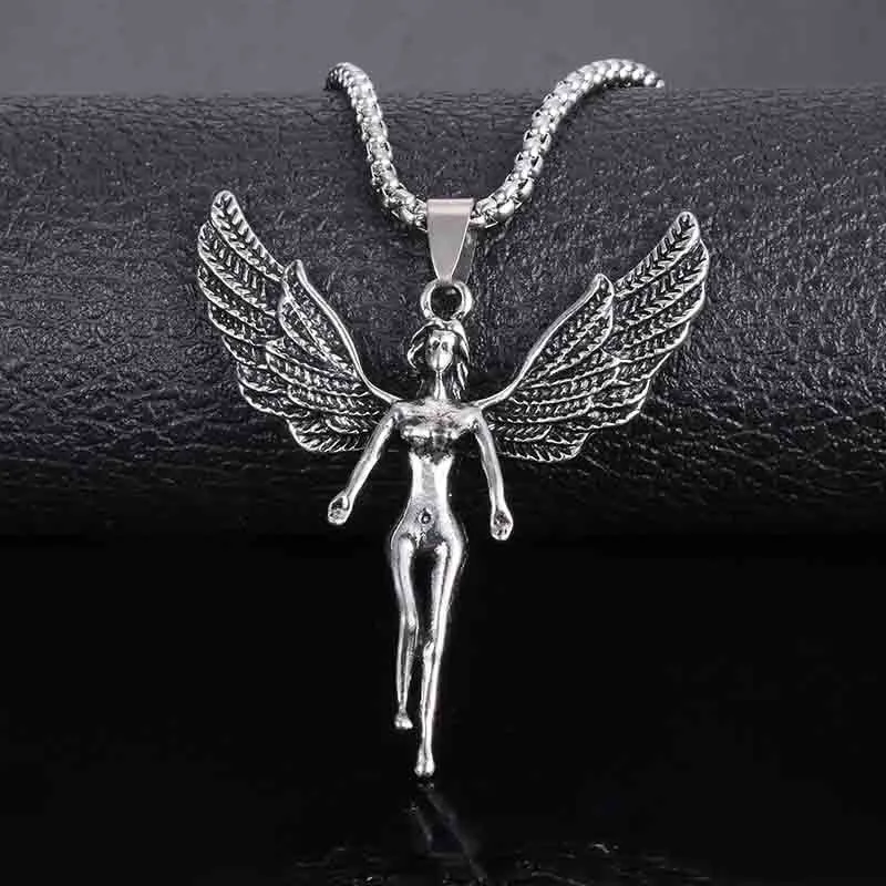 The angel wings symbolize faith, love, and spiritual connection, making this pendant a cherished piece for wearers of all backgrounds.