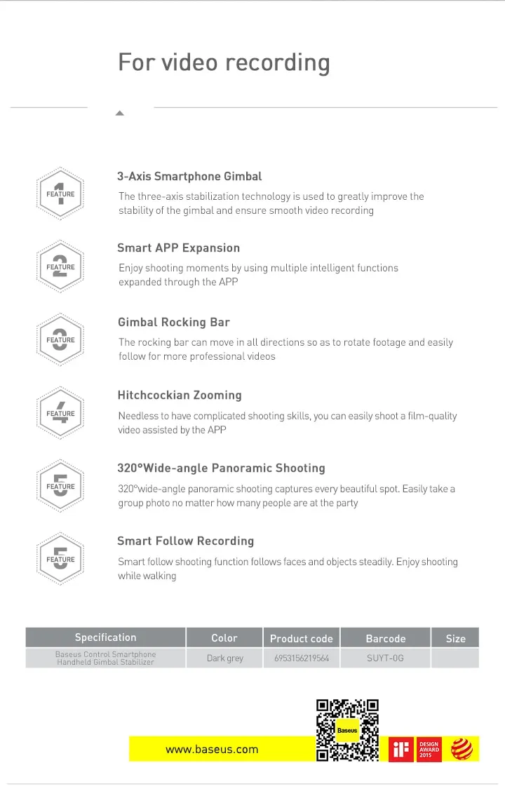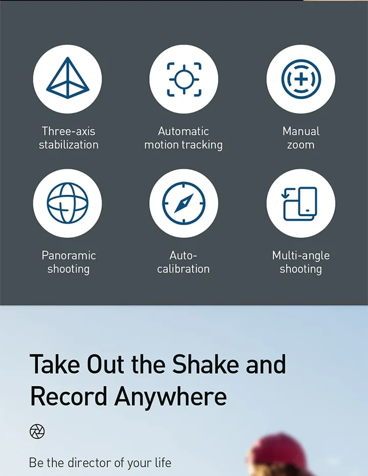 The stabilizer offers a variety of shooting modes, including pan mode, tilt mode, follow mode, and inverted mode, allowing you to choose the best setting for each shot. Whether you want a smooth cinematic pan, a smooth tilt, or even a unique inverted shot, the stabilizer makes it simple to capture stunning footage with minimal effort.