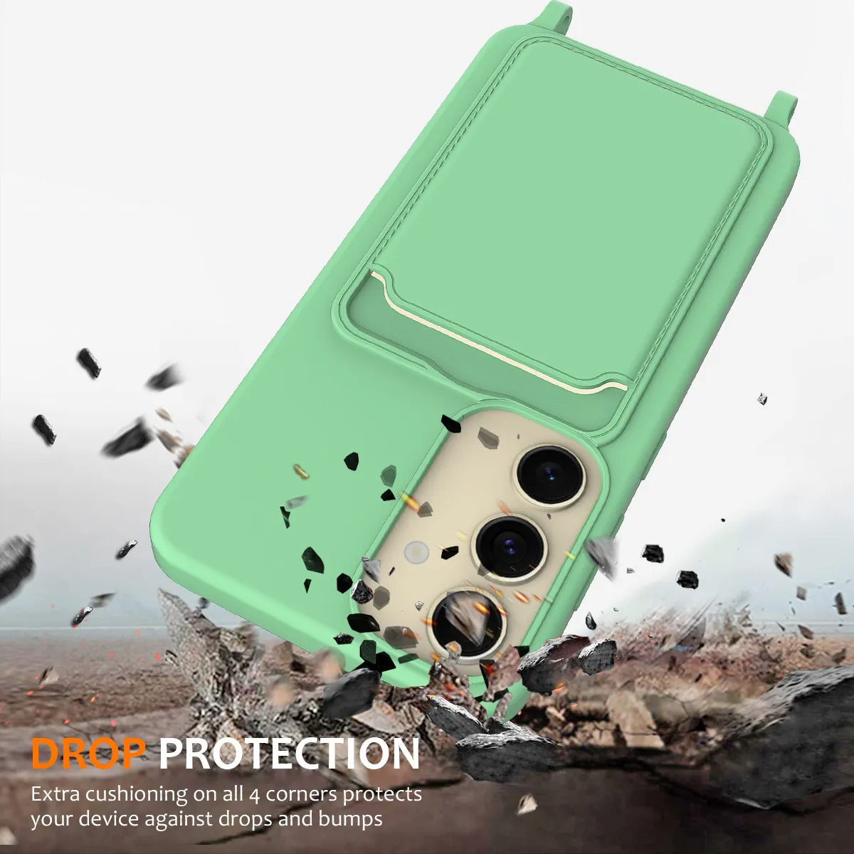 The Applicable Card Holder Silicone Lens Lanyard Drop-resistant Protective Case combines multiple functionalities into a single, convenient accessory. With a built-in card holder, lens protection, and detachable lanyard, this case is perfect for New Zealand users who value practicality, security, and style in their everyday phone use.