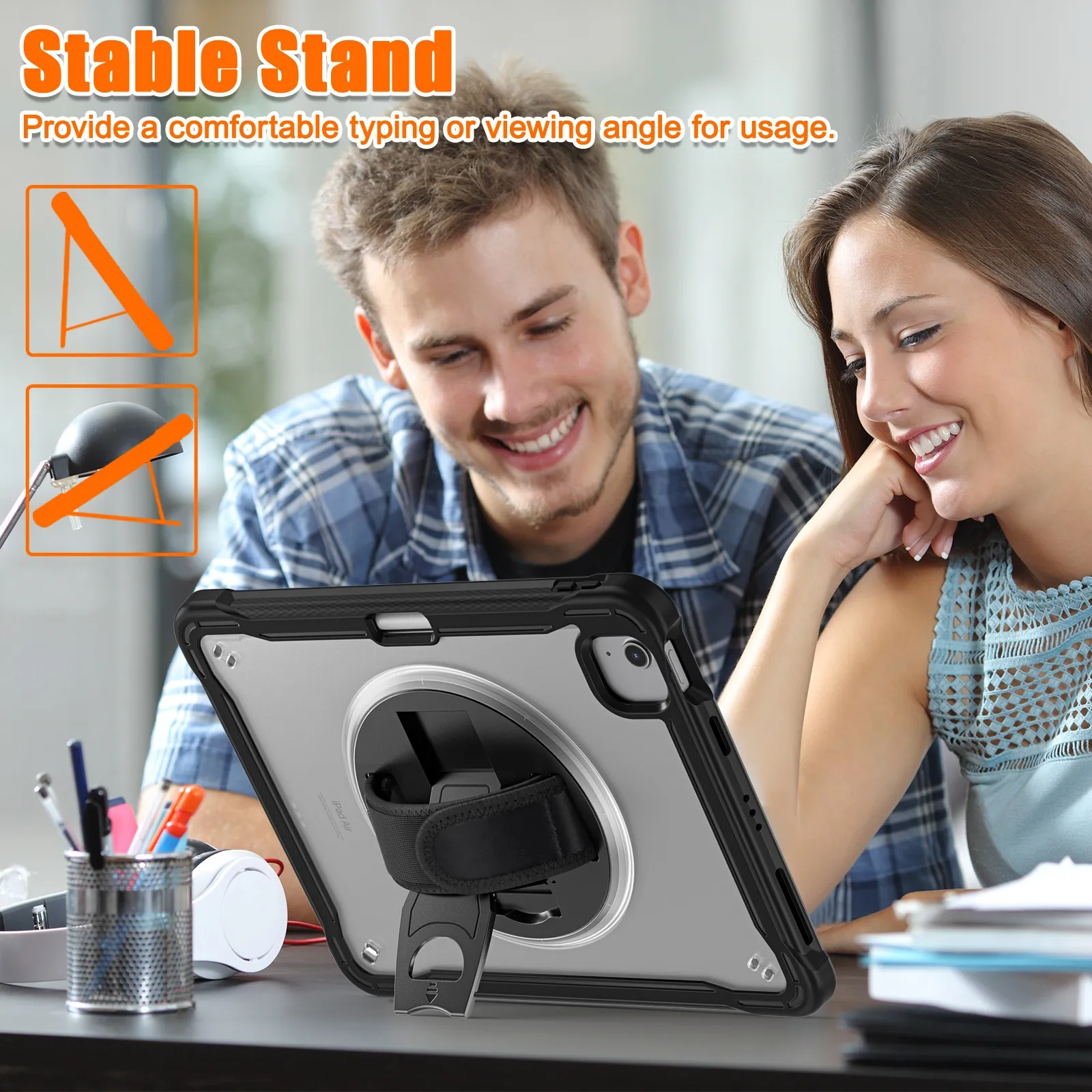 The rotatable bracket allows you to adjust the tablet to any angle, providing comfortable viewing and typing positions. Whether you’re watching movies, presenting, or reading, this stand enhances usability while keeping your tablet stable.