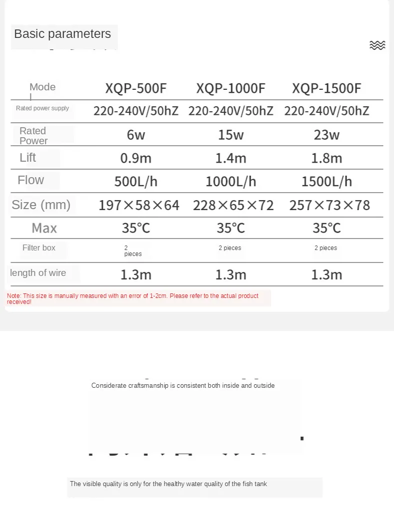 Flow rate: 500L/h, 1000L/h, 1500L/h
