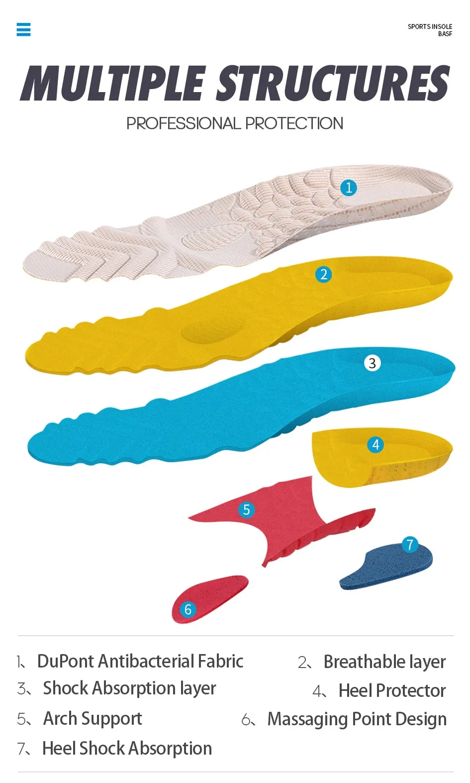Breathable and Moisture-Wicking: Designed with breathable fabrics, our insoles help keep your feet dry and cool, reducing
