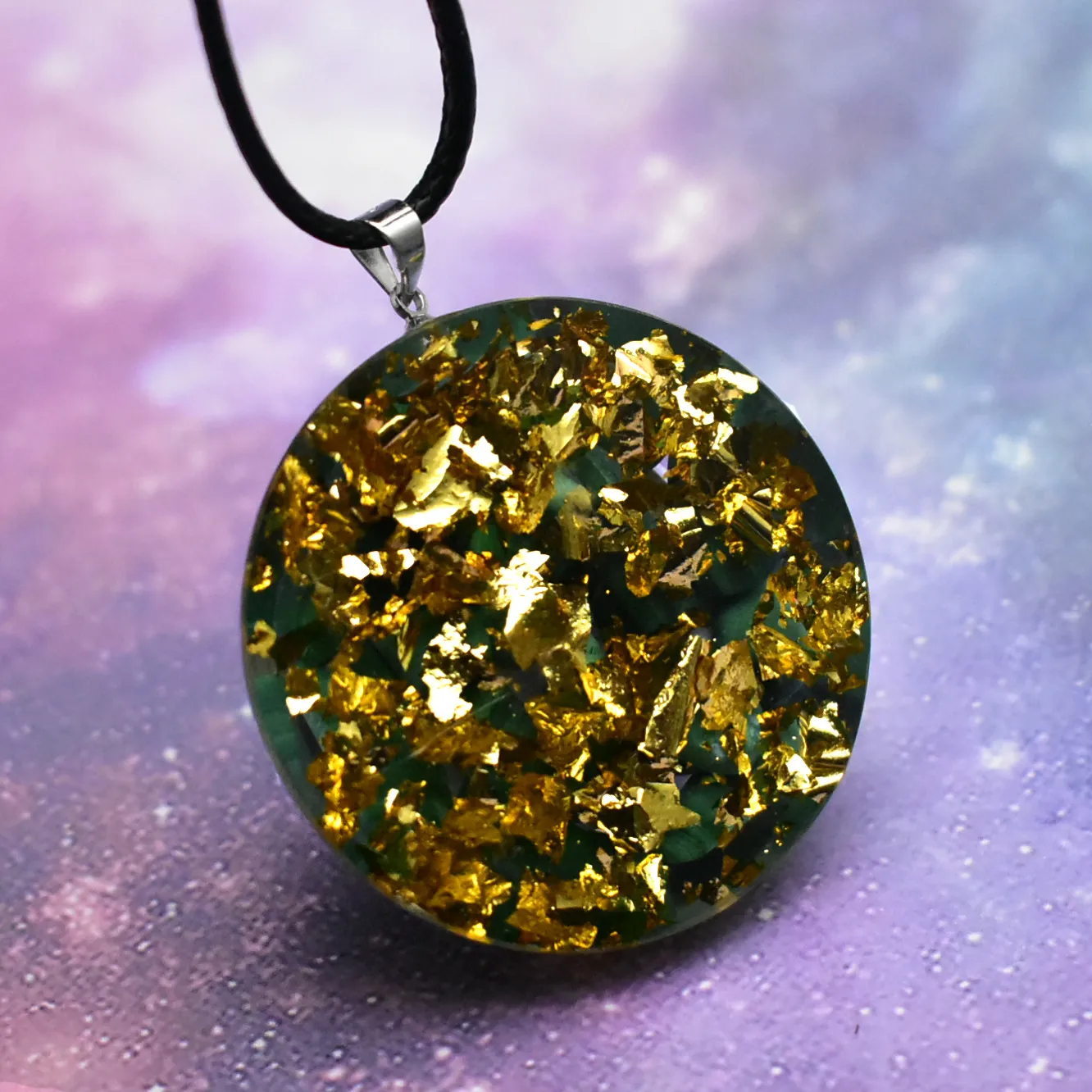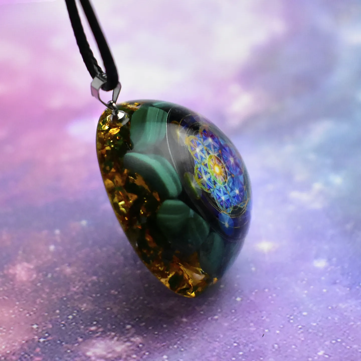 Archangel Rune Natural Crystal Epoxy Pendant Malachite Crushed Stone